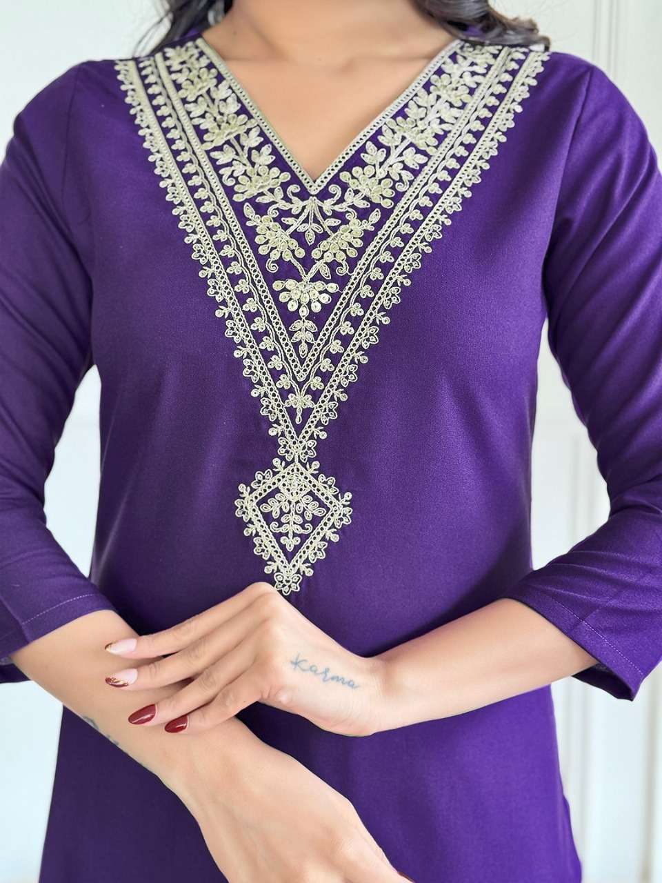 575 Viscose Rayon Embroidery Neck Work kurti manufacturer surat