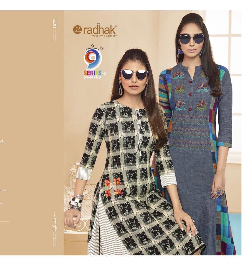Brand - Radhak . Catlog name -9 Series Vol -2. Size- M , L . XL , XXL & 3XL . Type - only Kurti . Set to set. GST 5 Percent Extra. Delivery 2 days . Book your order now . |