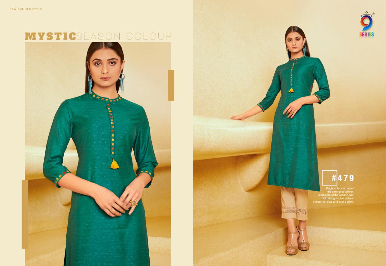 Brand - Radhak . Type - Kurti . Catlog name - 9 Series Vol-4. Rate- 525 per pcs . Set to set . GST 5 Percent Extra. Delivery 2 days |