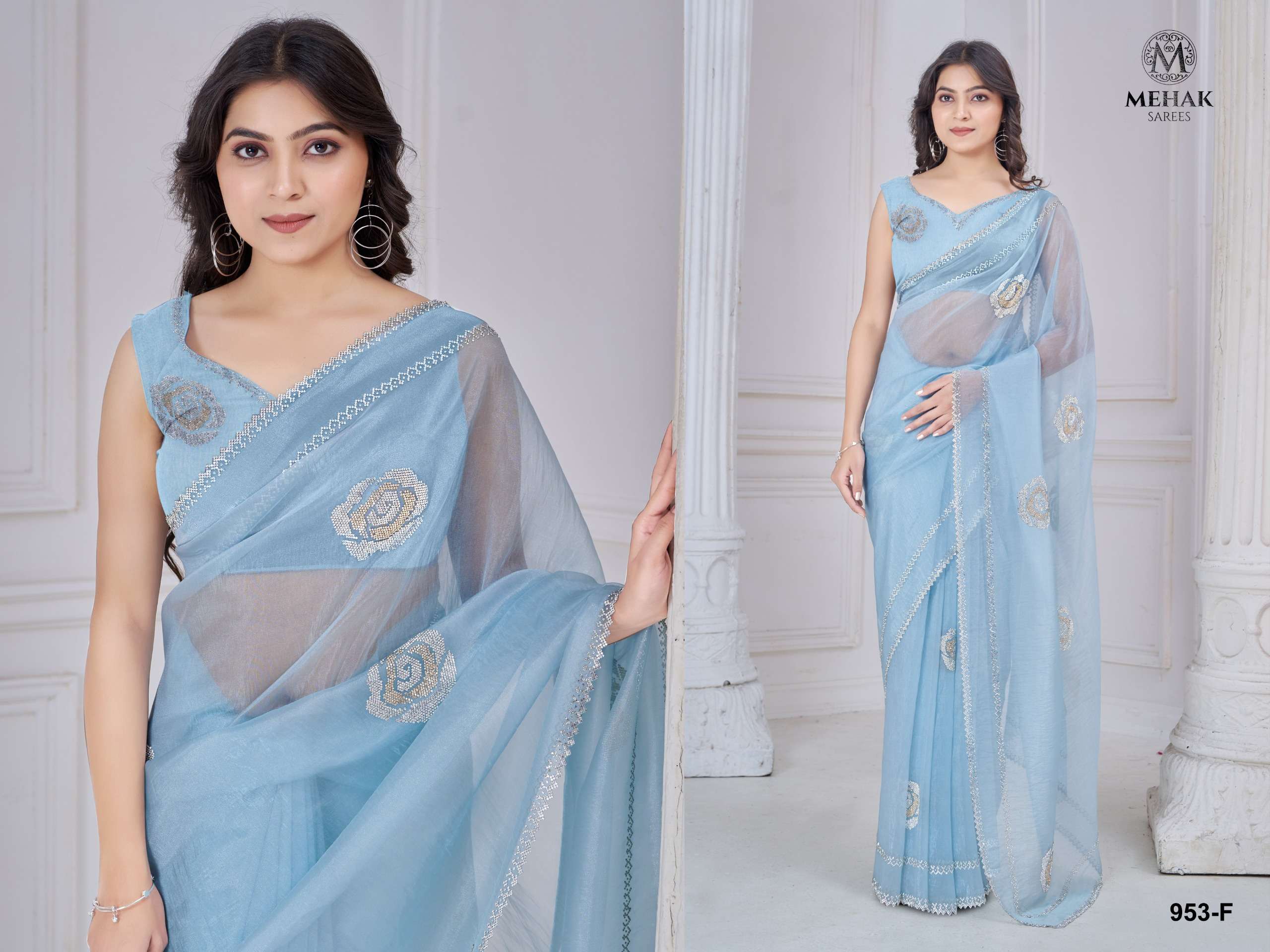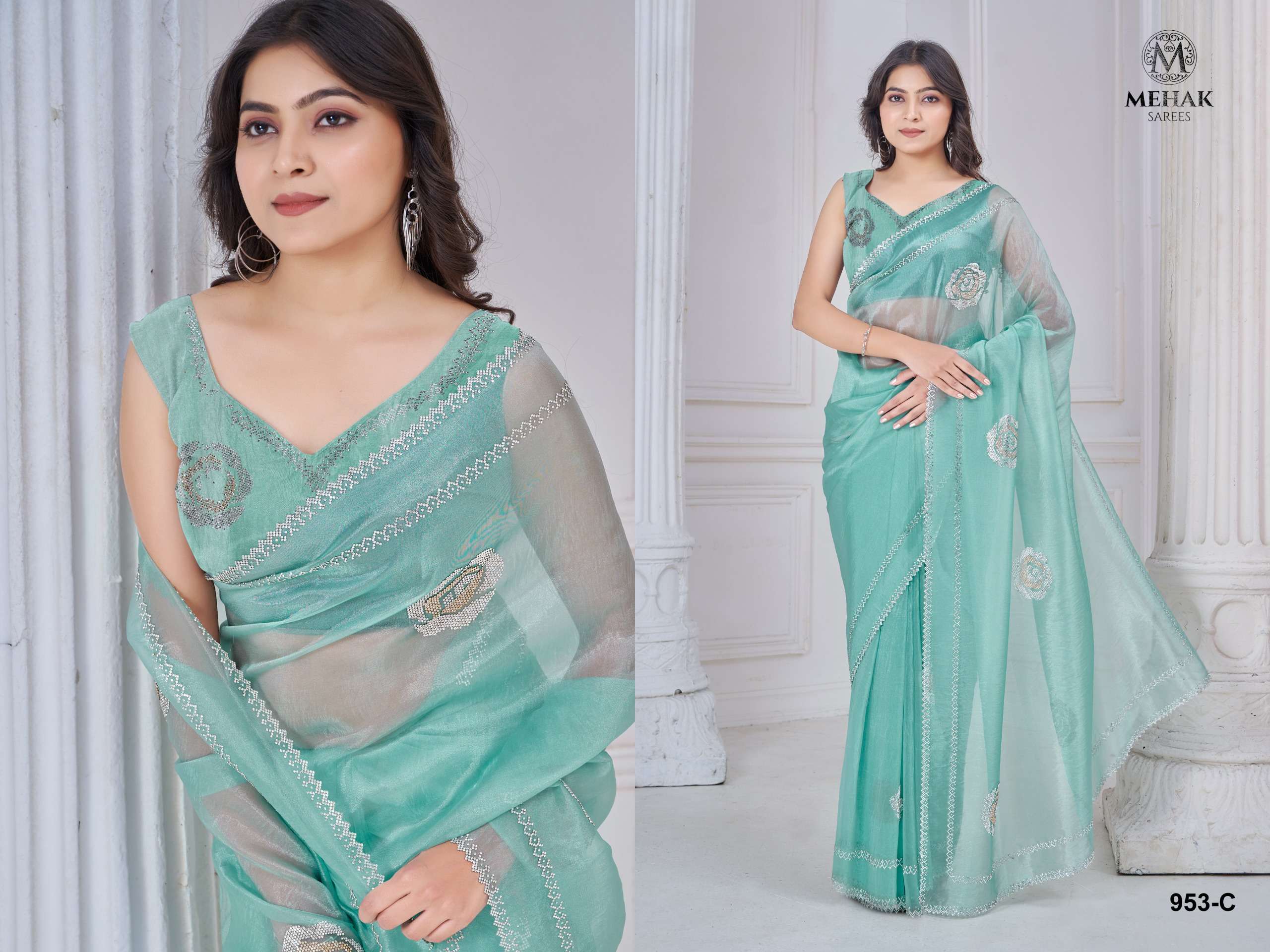 953A To 953F by Mehak Saree Organza saree collection manufacturer surat