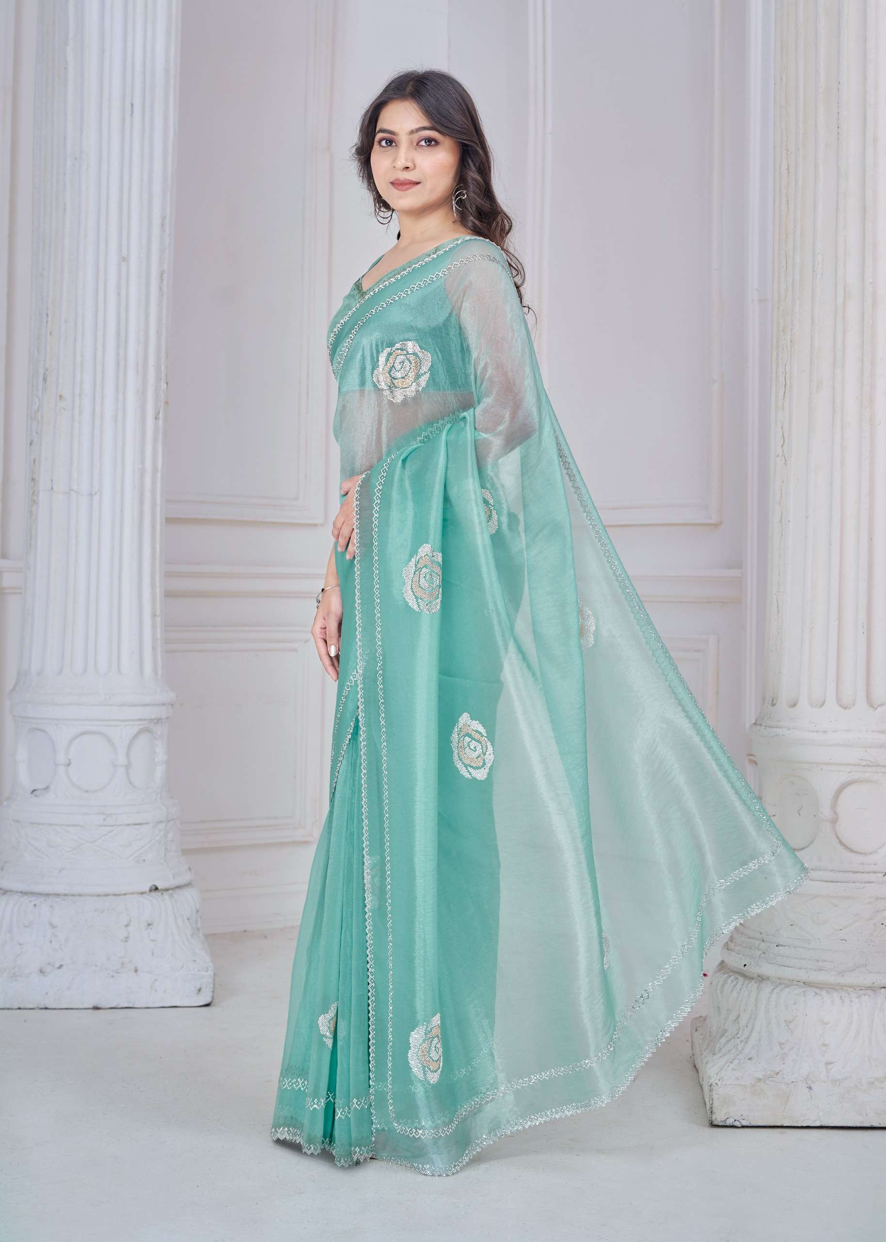 *Saree Fabric : Supreme Organza With Hand Work Two Tone Zarkan Work Saree*