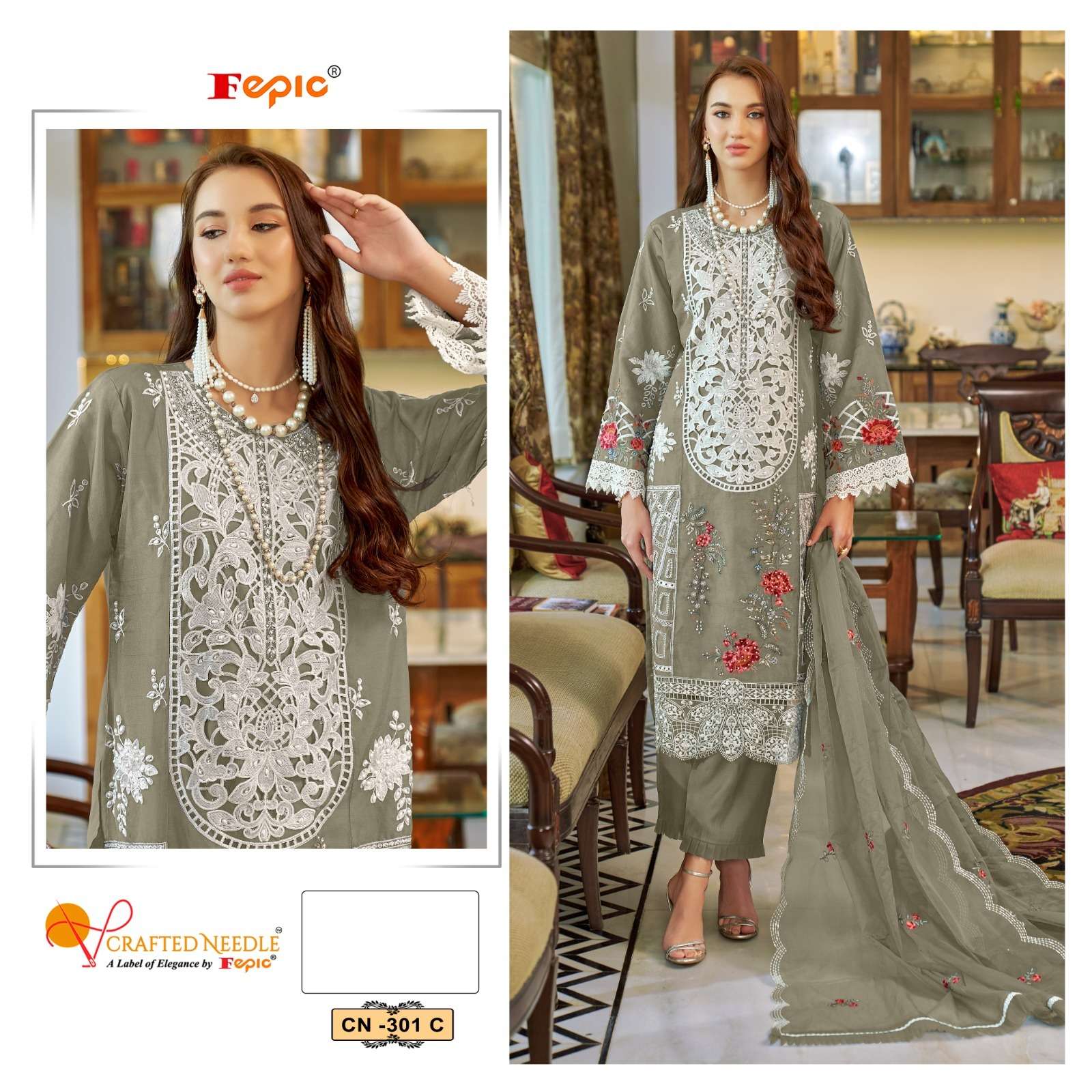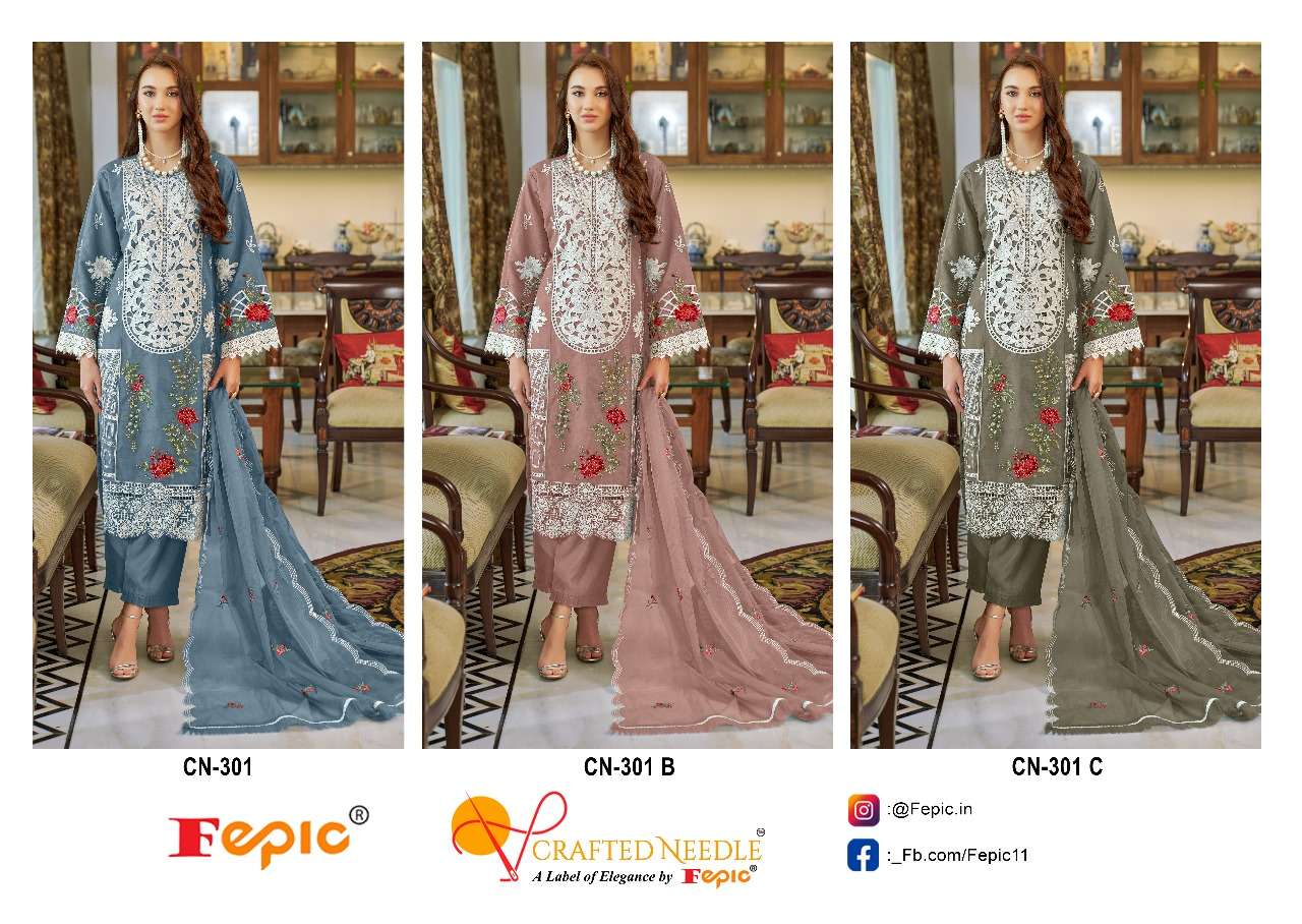 Buy Online A LABEL OF ELEGANCE Design No CN 301 by FEPIC suit collection manufacturer surat 3 Pcs of Full Catalogue at Wholesale Price. Looking for A LABEL OF ELEGANCE Design No CN 301 by FEPIC suit collection manufacturer surat Full Catalouge at Best Price? Buy Now A LABEL OF ELEGANCE Design No CN 301 by FEPIC suit collection manufacturer surat at Wholesale Rate of Rs 4953 with Total 3 Pcs from authroized dealer and supplier of FEPIC Brand. Cost of Each piece is just only Rs 1651 which is very low and affordable price to resale the product in your retail store ,This is Surat based Wholesale Supplier & Dealer of FEPIC Brand. Click on Brand name to Know more about FEPIC Brand's products.Call or Whatsapp on 9898838984 for booking or enquiry