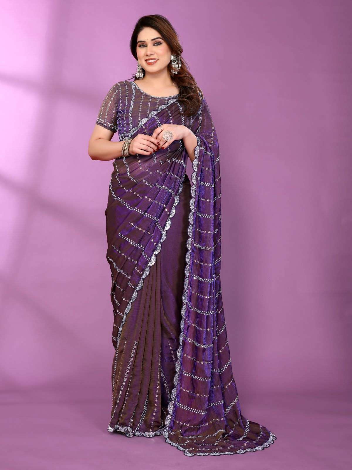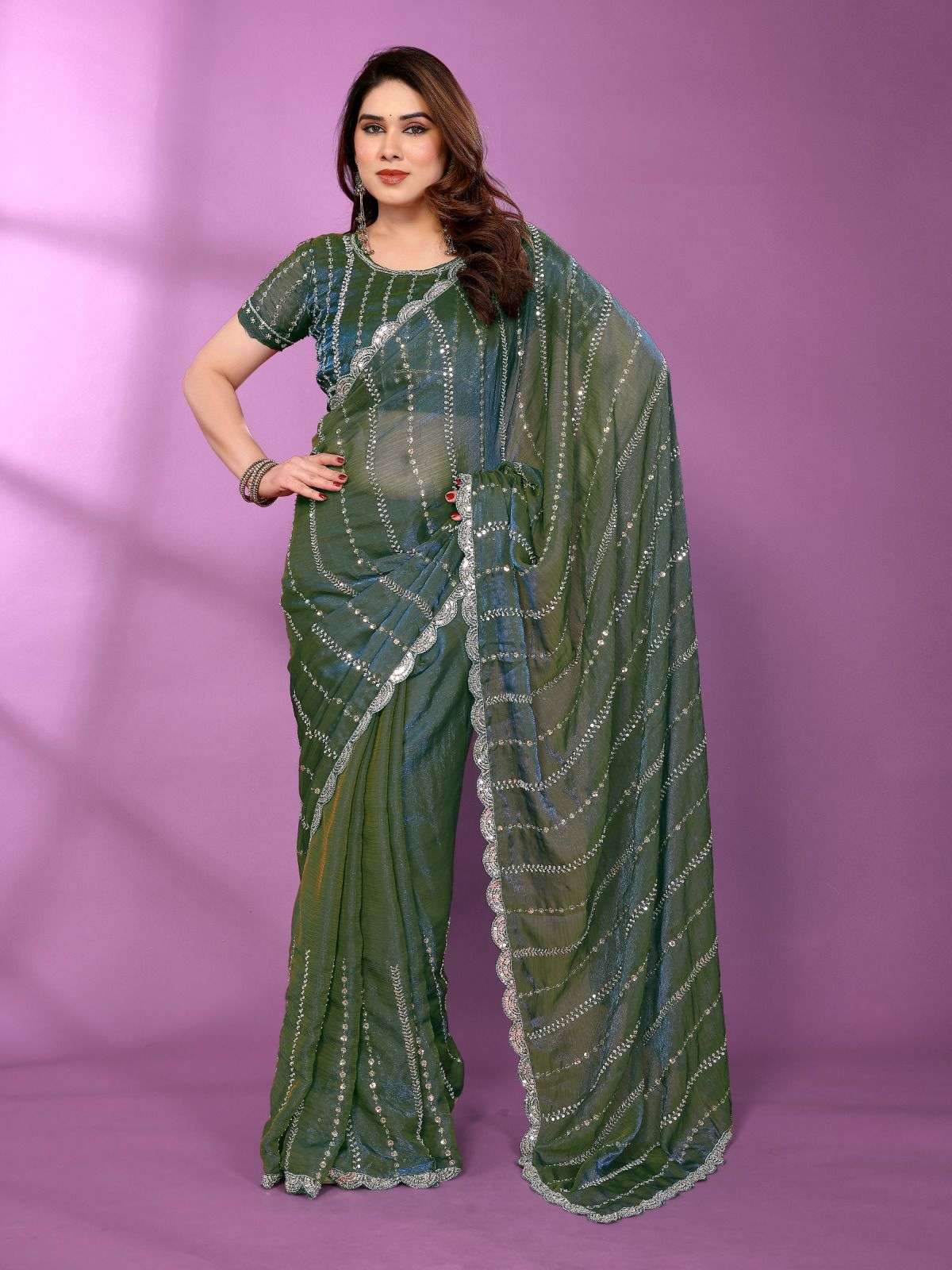 *PATTERN*-LUXURIOUS AND GLAMOROUS SAREE ORIGINAL BEEDS WORK