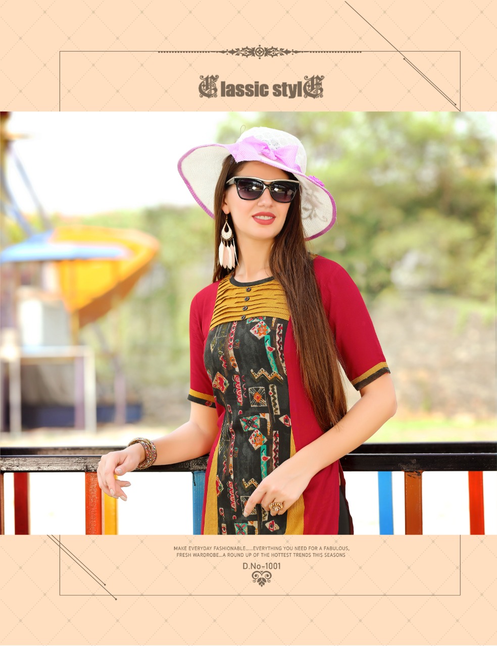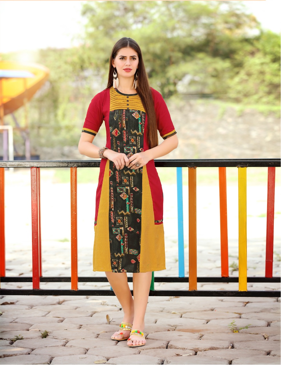 A4u Vol 5 By Ayush Fashion 1001 Series Fancy Reyon Printed Kurti Catlog Wholesale Dealer Surat