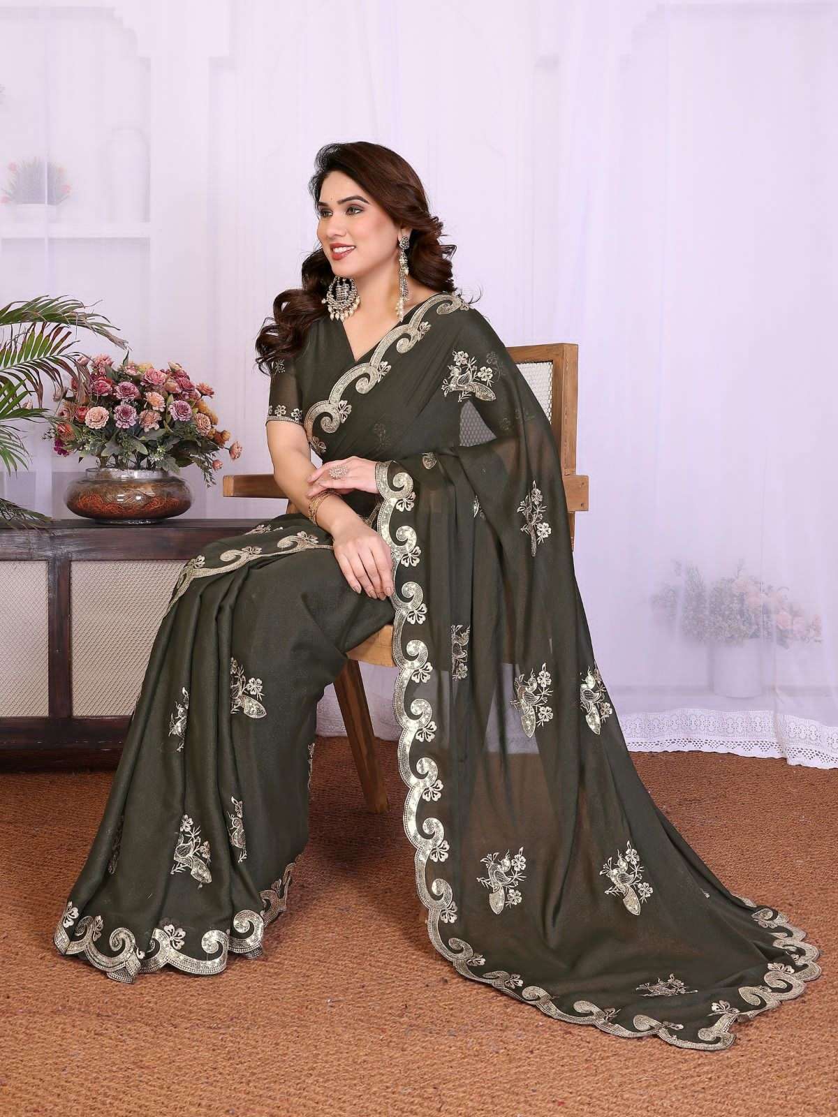 *😍Saree look rich heavy star georgette silk saree with sequins embroidery work saree and blouse With Beautiful Tone colour saree😍*