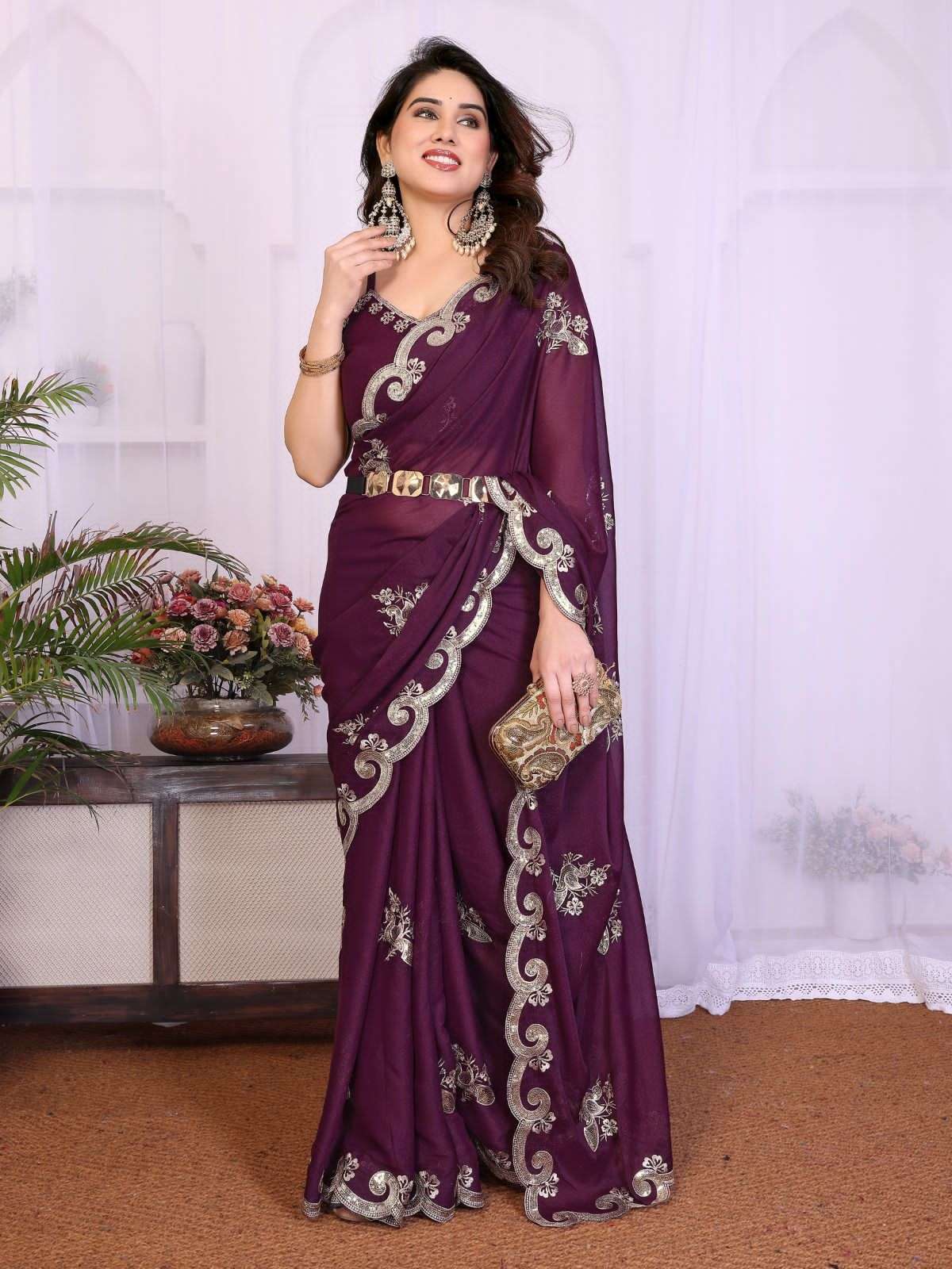 *PATTERN-SEQUINS EMBROIDERY WORK SAREE WITH EMBROIDERY WORK BLOUSE**