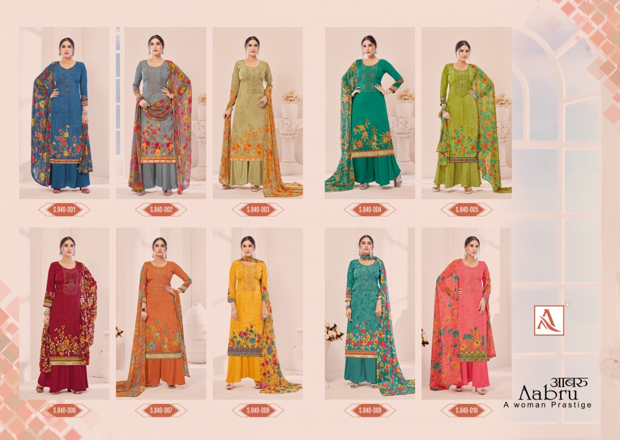 Buy Online Aabru By Alok Suit Dealer And Exporter Surat Gujarat 10 Pcs of Full Catalogue at Wholesale Price. Looking for Aabru By Alok Suit Dealer And Exporter Surat Gujarat Full Catalouge at Best Price? Buy Now Aabru By Alok Suit Dealer And Exporter Surat Gujarat at Wholesale Rate of Rs 5250 with Total 10 Pcs from authroized dealer and supplier of Brand. Cost of Each piece is just only Rs 525 which is very low and affordable price to resale the product in your retail store ,This is Surat based Wholesale Supplier & Dealer of Brand. Click on Brand name to Know more about Brand's products.Call or Whatsapp on 9898838984 for booking or enquiry