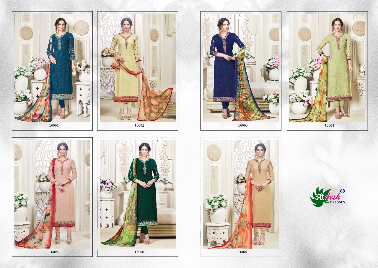 Buy Online Aadesh Nx Muskan Vol 16 16001 Series Georgette Emb Suits 7 Pcs of Full Catalogue at Wholesale Price. Looking for Aadesh Nx Muskan Vol 16 16001 Series Georgette Emb Suits Full Catalouge at Best Price? Buy Now Aadesh Nx Muskan Vol 16 16001 Series Georgette Emb Suits at Wholesale Rate of Rs 9765 with Total 7 Pcs from authroized dealer and supplier of AADESH NX Brand. Cost of Each piece is just only Rs 1395 which is very low and affordable price to resale the product in your retail store ,This is Surat based Wholesale Supplier & Dealer of AADESH NX Brand. Click on Brand name to Know more about AADESH NX Brand's products.Call or Whatsapp on 9898838984 for booking or enquiry