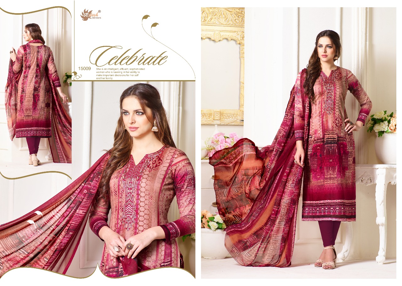 ZEENAT VOL-15 By AADESH NX PRICE. - 599/- Fabric: Top- Pure cotton with embroidery 2.40 mtr Bottom - semiloan 2.75mtr Duptta - chiffone printed(poly) app. 2.25 mtr Rate-599 per Pcs . Set to set . GST 5 Percent Extra. packed in leather bag . Delivery from- 27/06/18 |