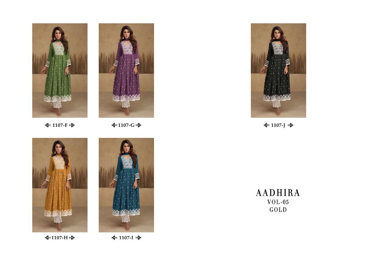 Buy Online Aadhira Vol 5 Gold Nayra Style Wear Collection Manufacturer Surat 5 Pcs of Full Catalogue at Wholesale Price. Looking for Aadhira Vol 5 Gold Nayra Style Wear Collection Manufacturer Surat Full Catalouge at Best Price? Buy Now Aadhira Vol 5 Gold Nayra Style Wear Collection Manufacturer Surat at Wholesale Rate of Rs 0 with Total 5 Pcs from authroized dealer and supplier of Brand. Cost of Each piece is just only Rs 0 which is very low and affordable price to resale the product in your retail store ,This is Surat based Wholesale Supplier & Dealer of Brand. Click on Brand name to Know more about Brand's products.Call or Whatsapp on 9898838984 for booking or enquiry