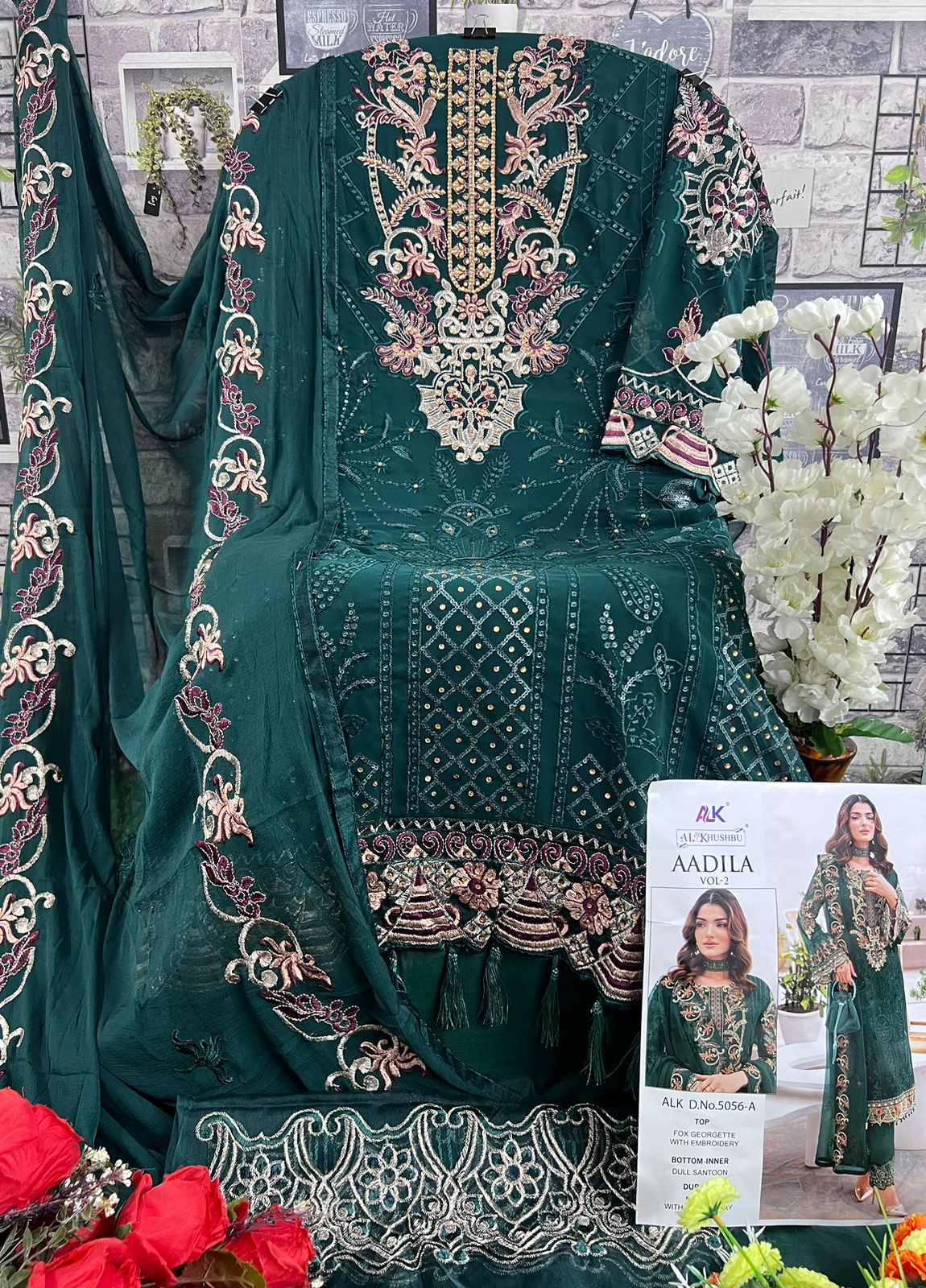 Buy Online Aadila Vol 2 By Al Khushbu Georgette Pakistani Suits 5 Pcs of Full Catalogue at Wholesale Price. Looking for Aadila Vol 2 By Al Khushbu Georgette Pakistani Suits Full Catalouge at Best Price? Buy Now Aadila Vol 2 By Al Khushbu Georgette Pakistani Suits at Wholesale Rate of Rs 6745 with Total 5 Pcs from authroized dealer and supplier of Brand. Cost of Each piece is just only Rs 1349 which is very low and affordable price to resale the product in your retail store ,This is Surat based Wholesale Supplier & Dealer of Brand. Click on Brand name to Know more about Brand's products.Call or Whatsapp on 9898838984 for booking or enquiry