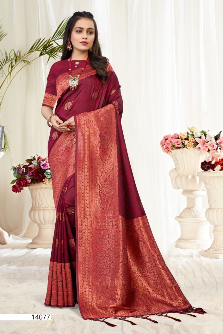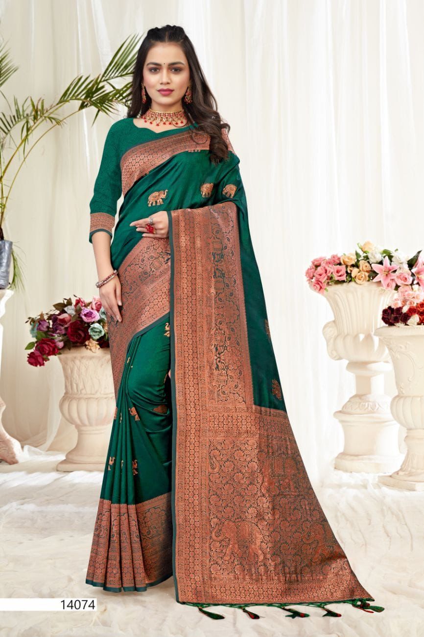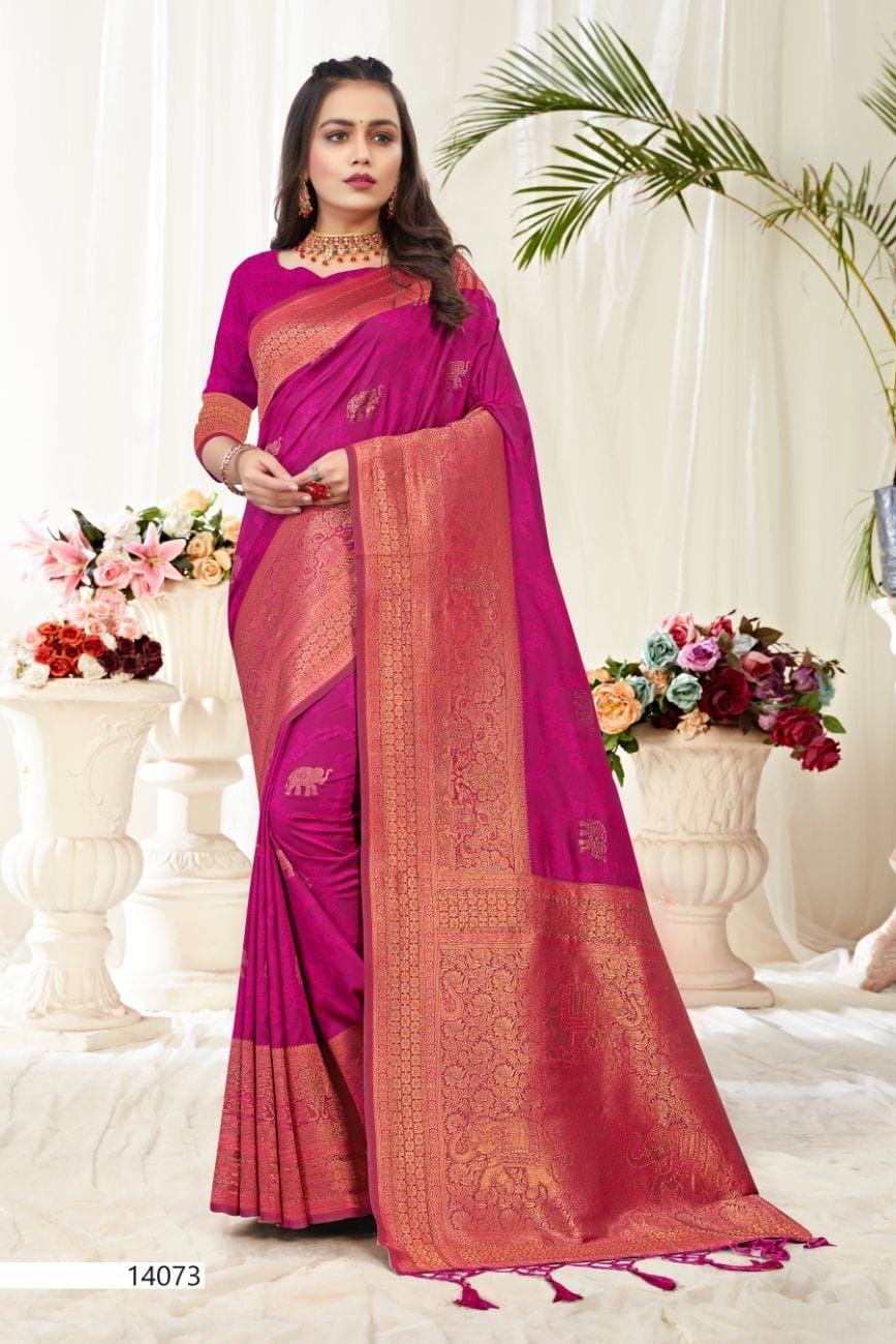 ? *New Catalog Exclusively Launching From Our Newly Launched Brand:- BUNAWAT* ? Catalog Name: *AAHANA* Brand: *BUNAWAT* Product Type: Saree Fabric: Silk Price Per Piece: 1575/- Gst Extra: 5% Work: Zari Woven Work Other Specifications: Tassels on Pallu Saree Mtr: 5.5 Mtr Blouse: 0.8 Mtr Total Pcs: 6 _*Book your orders now*_ SINGLE AVAILABLE 100+ single |