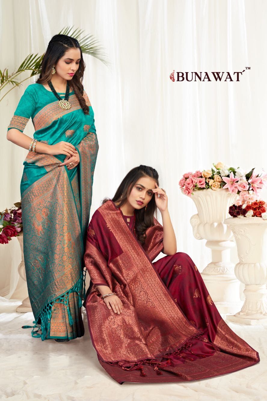 Buy Online Aahana Bunawat Silk Sarees 6 Pcs of Full Catalogue at Wholesale Price. Looking for Aahana Bunawat Silk Sarees Full Catalouge at Best Price? Buy Now Aahana Bunawat Silk Sarees at Wholesale Rate of Rs 9450 with Total 6 Pcs from authroized dealer and supplier of BUNAWAT Brand. Cost of Each piece is just only Rs 1575 which is very low and affordable price to resale the product in your retail store ,This is Surat based Wholesale Supplier & Dealer of BUNAWAT Brand. Click on Brand name to Know more about BUNAWAT Brand's products.Call or Whatsapp on 9898838984 for booking or enquiry