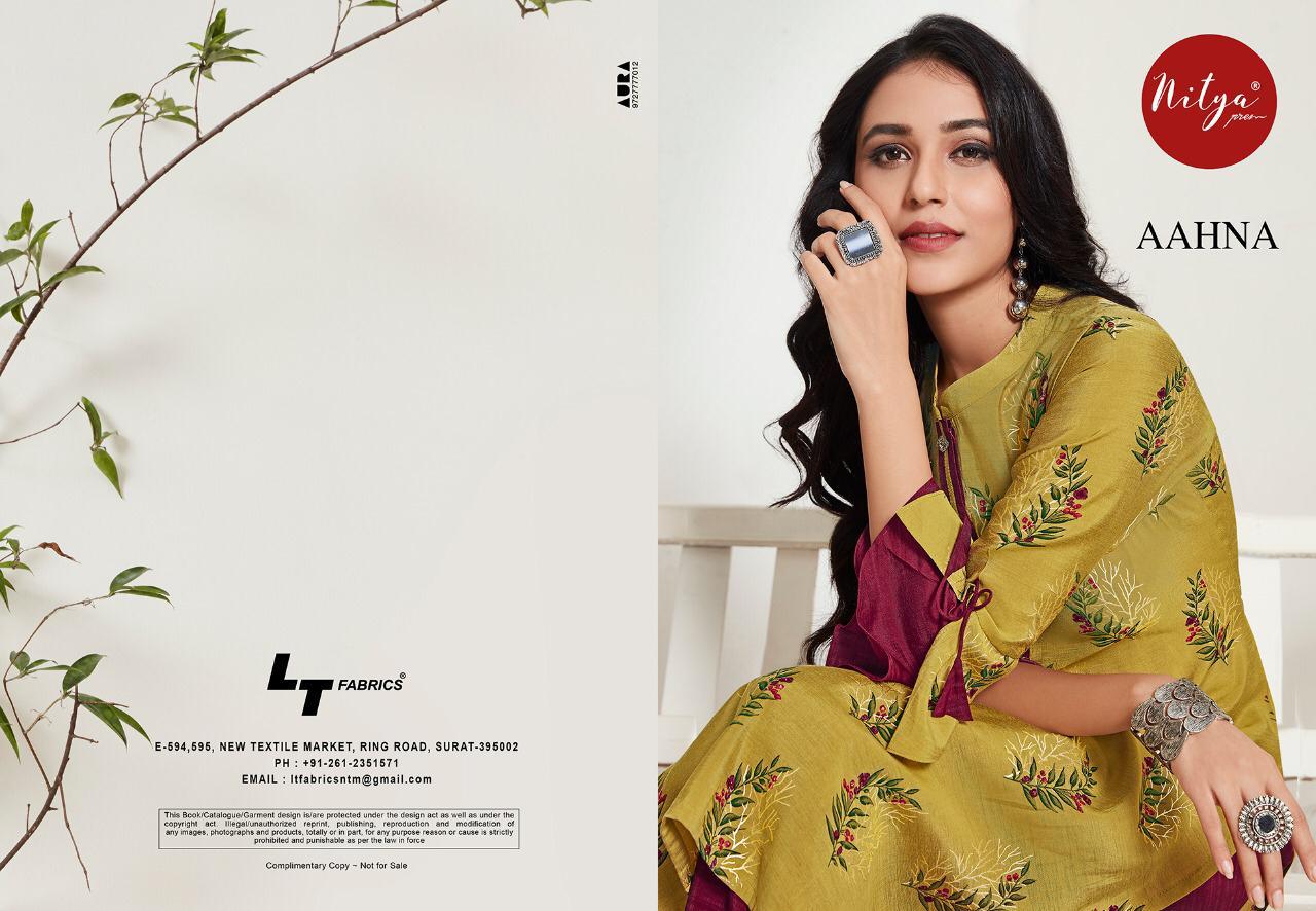 Buy Online Aahana By Lt Series 101 To 109 Designer Kurtis With Bottom Wholesale Supplier Nd Dealer Gujarat 9 Pcs of Full Catalogue at Wholesale Price. Looking for Aahana By Lt Series 101 To 109 Designer Kurtis With Bottom Wholesale Supplier Nd Dealer Gujarat Full Catalouge at Best Price? Buy Now Aahana By Lt Series 101 To 109 Designer Kurtis With Bottom Wholesale Supplier Nd Dealer Gujarat at Wholesale Rate of Rs 8460 with Total 9 Pcs from authroized dealer and supplier of LT FABRICS Brand. Cost of Each piece is just only Rs 940 which is very low and affordable price to resale the product in your retail store ,This is Surat based Wholesale Supplier & Dealer of LT FABRICS Brand. Click on Brand name to Know more about LT FABRICS Brand's products.Call or Whatsapp on 9898838984 for booking or enquiry
