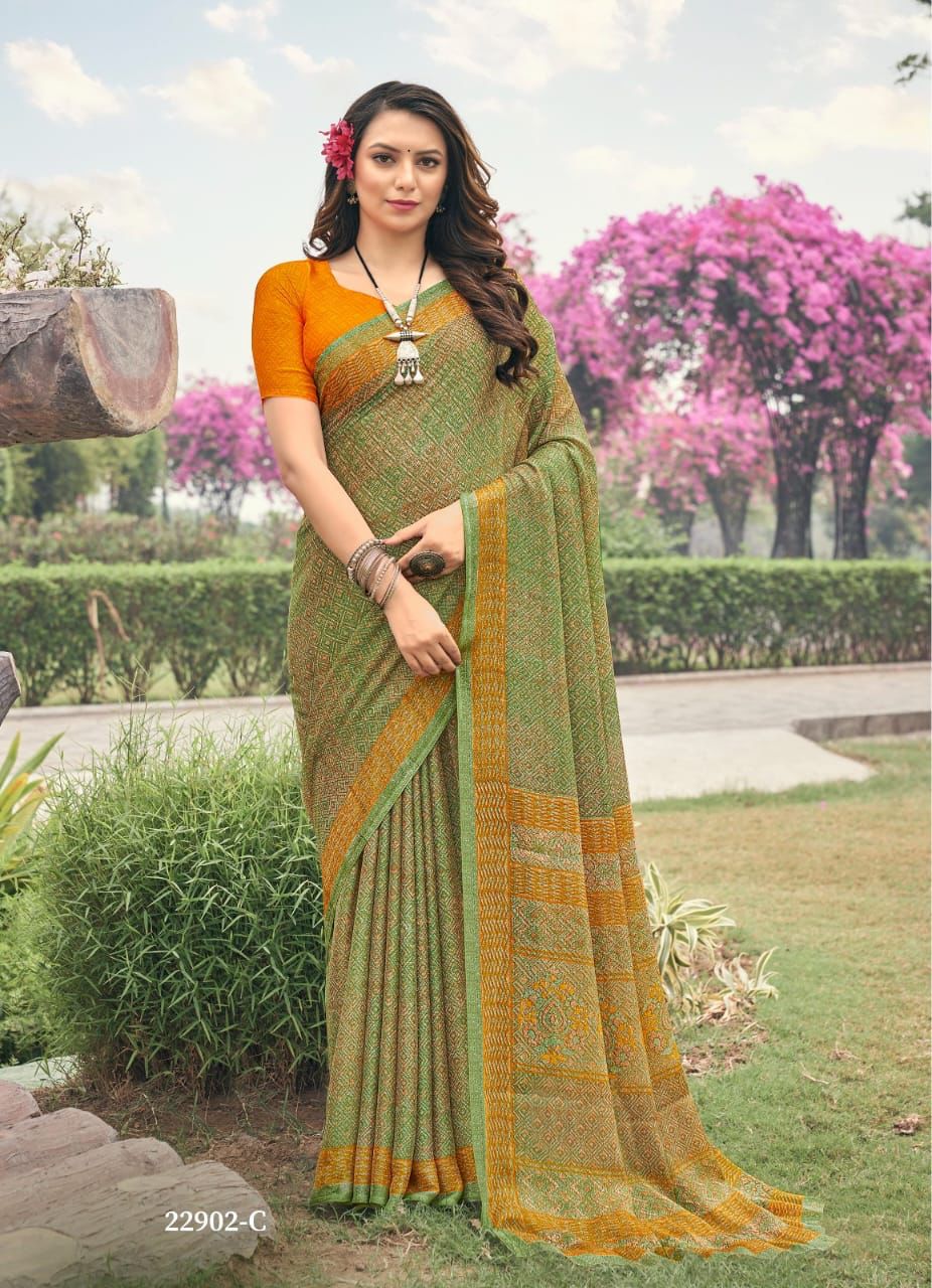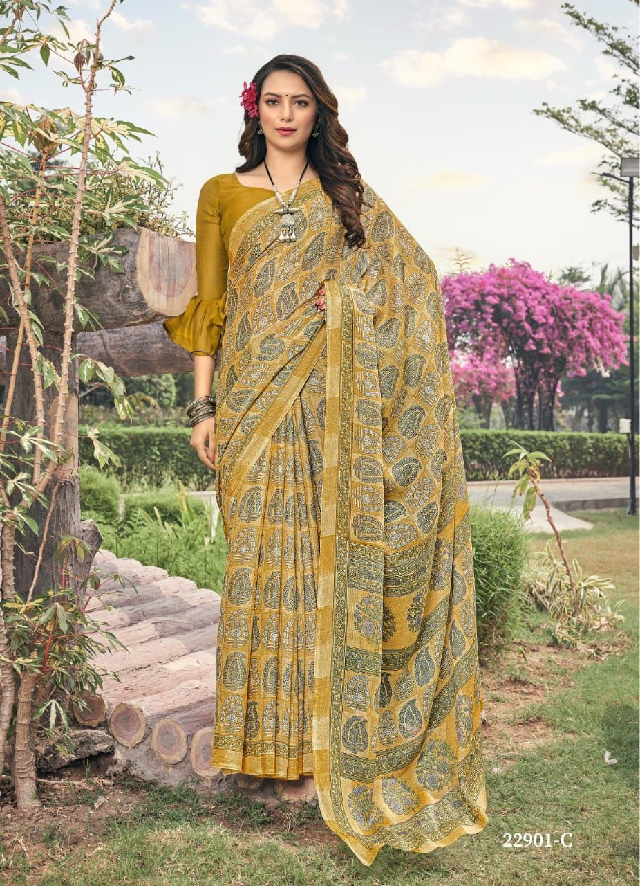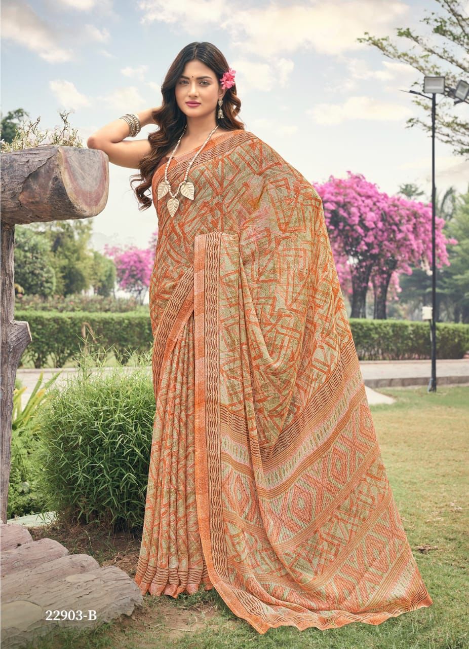 *BRAND : RUCHI* *CATALOG : AAHANA {22900 SERIES}* *SAREE FABRIC : PURE SILVER CHIFFON* *PRICE :- 550 + 5% GST EXTRA* *SINGLES & SET WISE AVAILABLE * *READY DISPATCH* *PACKING :- SETWISE & DESIGNWISE* 100+single |