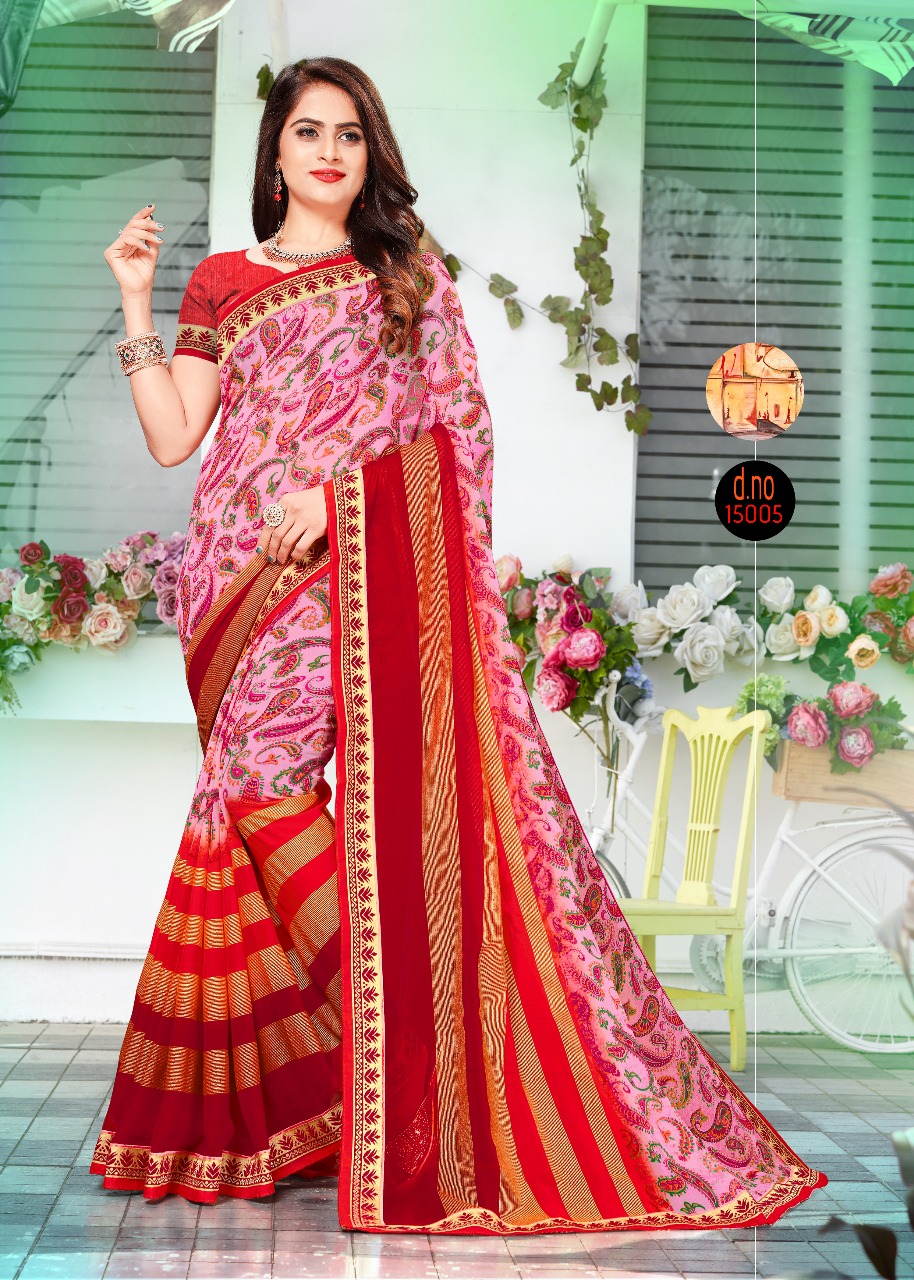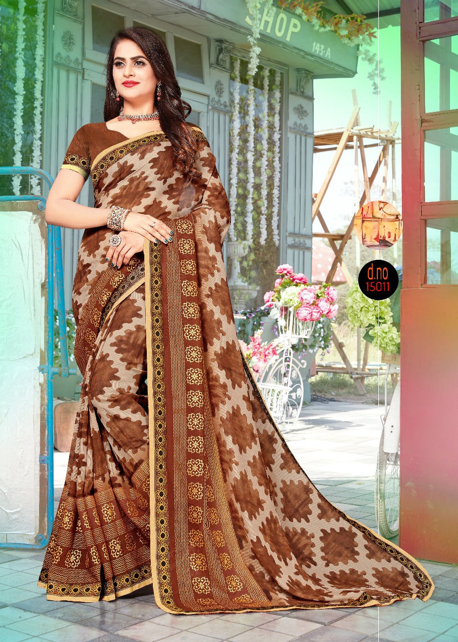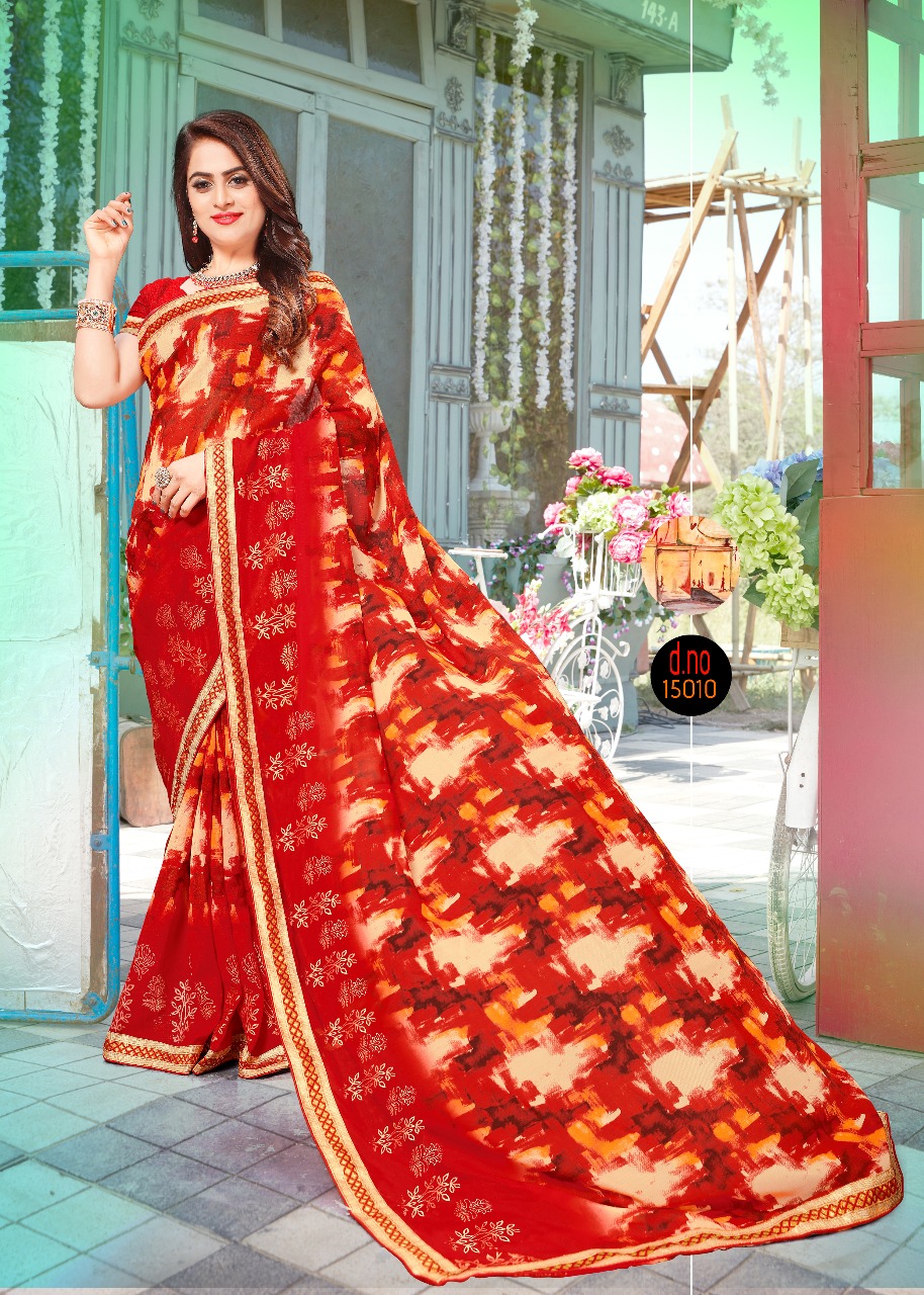 Aaina 4 By Amaze Shree Kushal Beautiful Georgette Print With Attractive Border Lace Sarees Catalogue Wholesale Supplier And Dealer Surat