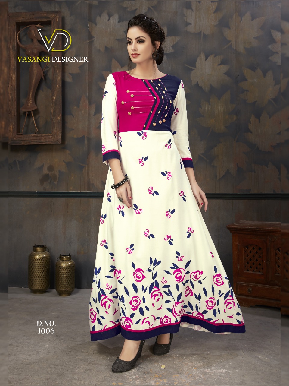 Aaina Vol 1 By Vasangi Designer Reyon Printed Kurtis Wholesale Supplier Surat
