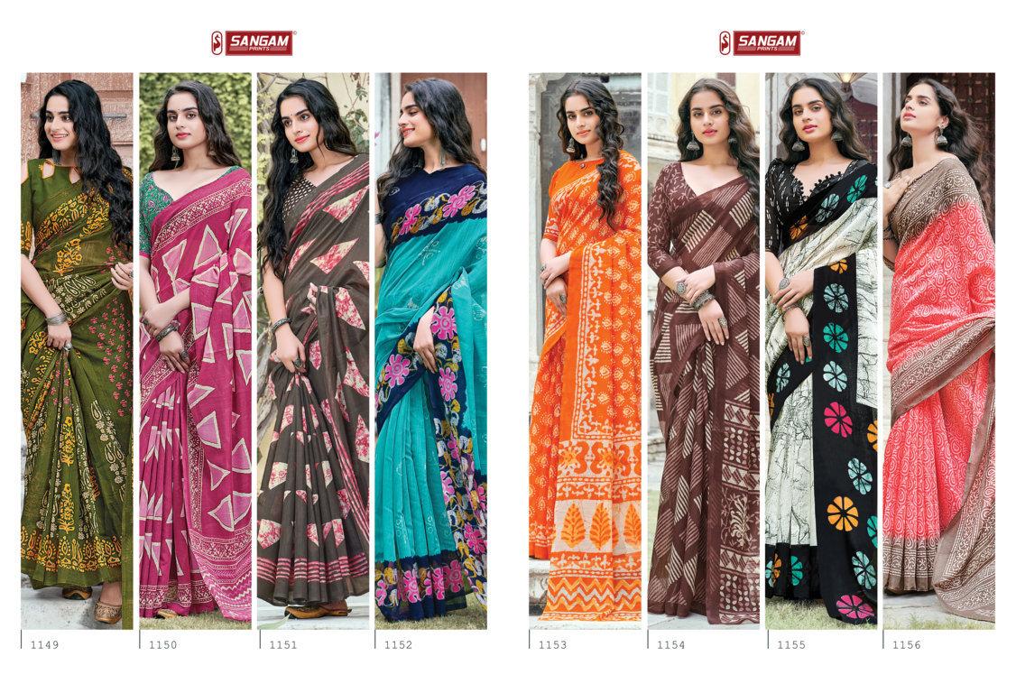 Brand - Sangam ?LAUNCHING? ?NEW CATALOG? CATALOG :- AAKRUTI FABRIC: Cotton RATE: 550 + GST SAREE SIZE: 5.50 Mtr BLOUSE FABRIC: 0.80 Mtr TOTAL PCS: 8 AVAILABLE :- SINGLE PCS AND FULL SET BOTH ARE Available WITH BLOUSE PIECE ATTACHED ?BOOK YOUR ORDERS NOW? 100+single |