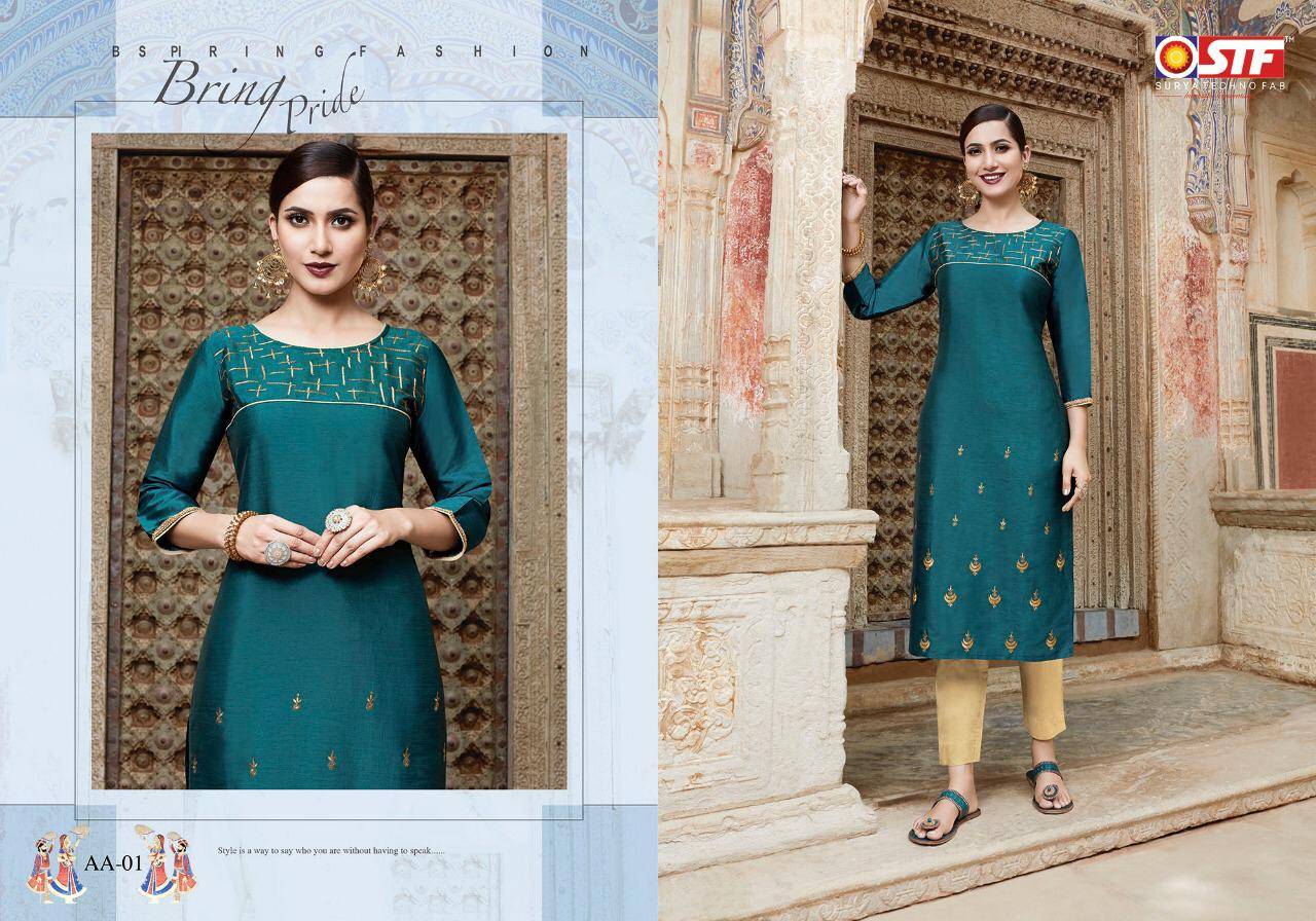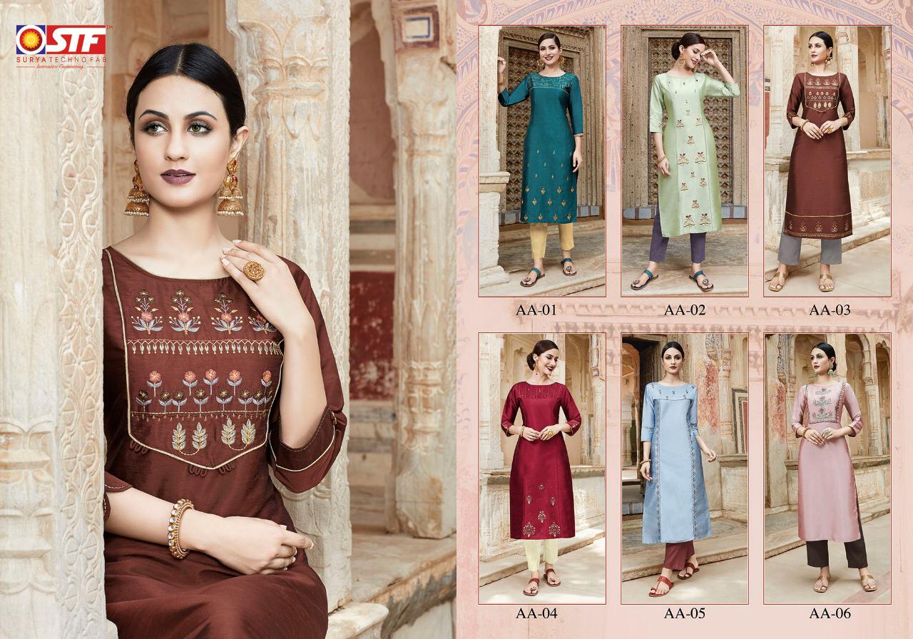 Buy Online Aakruti By Stf Silk Kurtis With Bottom Wholesale Supplier Gujarat 6 Pcs of Full Catalogue at Wholesale Price. Looking for Aakruti By Stf Silk Kurtis With Bottom Wholesale Supplier Gujarat Full Catalouge at Best Price? Buy Now Aakruti By Stf Silk Kurtis With Bottom Wholesale Supplier Gujarat at Wholesale Rate of Rs 5550 with Total 6 Pcs from authroized dealer and supplier of Brand. Cost of Each piece is just only Rs 925 which is very low and affordable price to resale the product in your retail store ,This is Surat based Wholesale Supplier & Dealer of Brand. Click on Brand name to Know more about Brand's products.Call or Whatsapp on 9898838984 for booking or enquiry