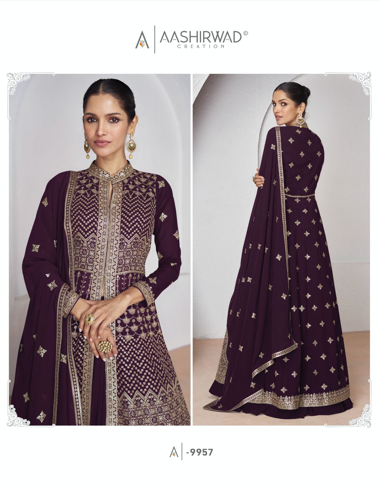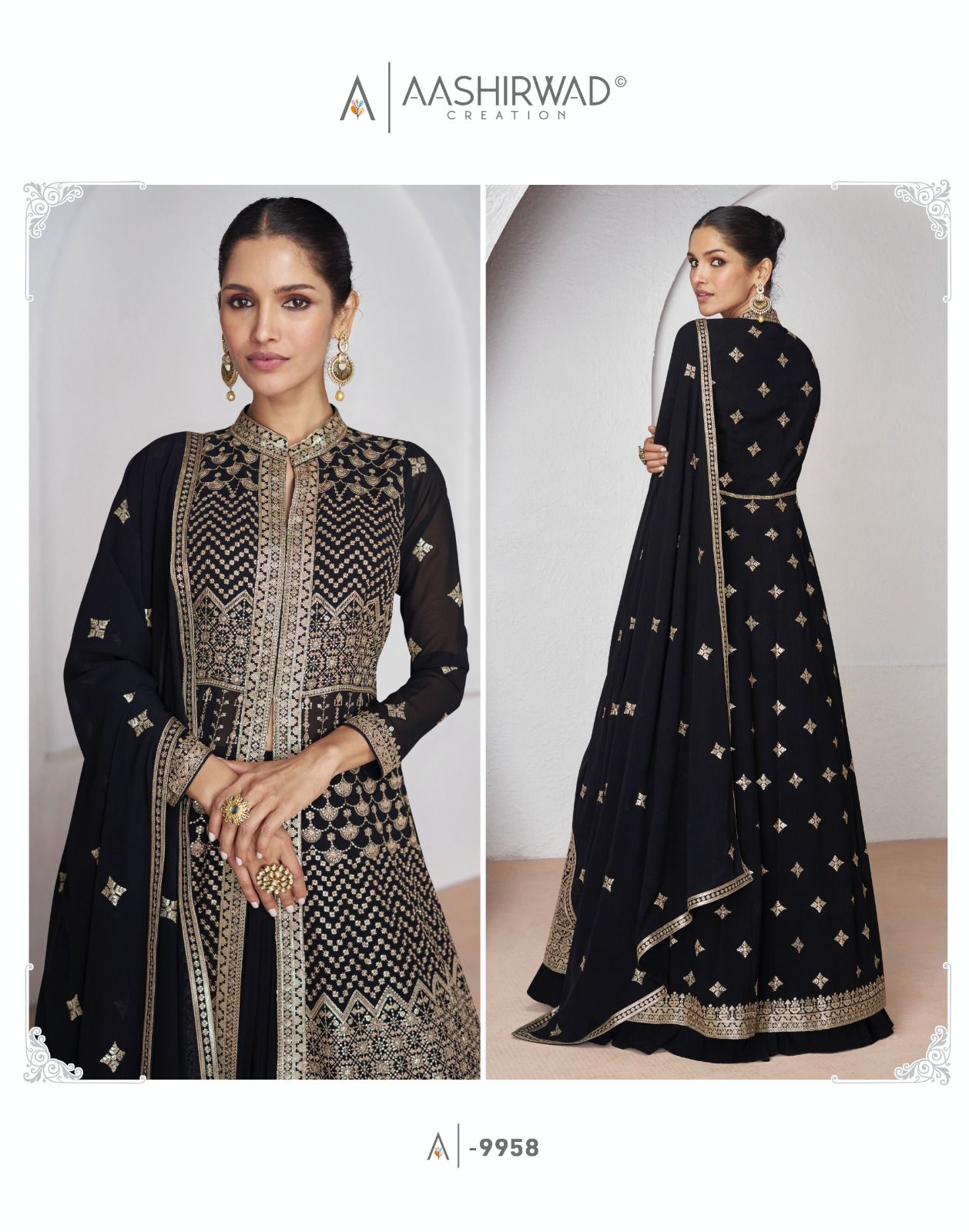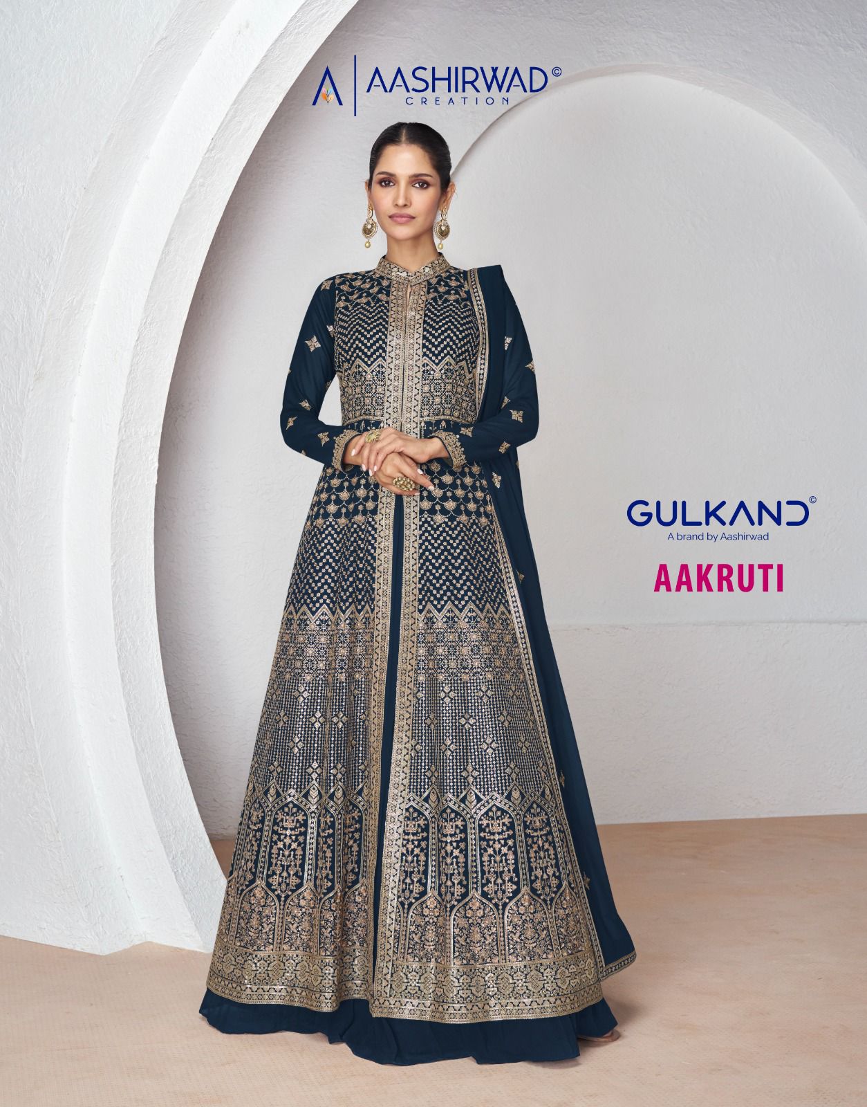 Buy Online Aakruti Series 9955 To 9958 By Aashirwad Georgette Anarkali Style Collection Manufacturer Surat 4 Pcs of Full Catalogue at Wholesale Price. Looking for Aakruti Series 9955 To 9958 By Aashirwad Georgette Anarkali Style Collection Manufacturer Surat Full Catalouge at Best Price? Buy Now Aakruti Series 9955 To 9958 By Aashirwad Georgette Anarkali Style Collection Manufacturer Surat at Wholesale Rate of Rs 11196 with Total 4 Pcs from authroized dealer and supplier of AASHIRWAD Brand. Cost of Each piece is just only Rs 2799 which is very low and affordable price to resale the product in your retail store ,This is Surat based Wholesale Supplier & Dealer of AASHIRWAD Brand. Click on Brand name to Know more about AASHIRWAD Brand's products.Call or Whatsapp on 9898838984 for booking or enquiry
