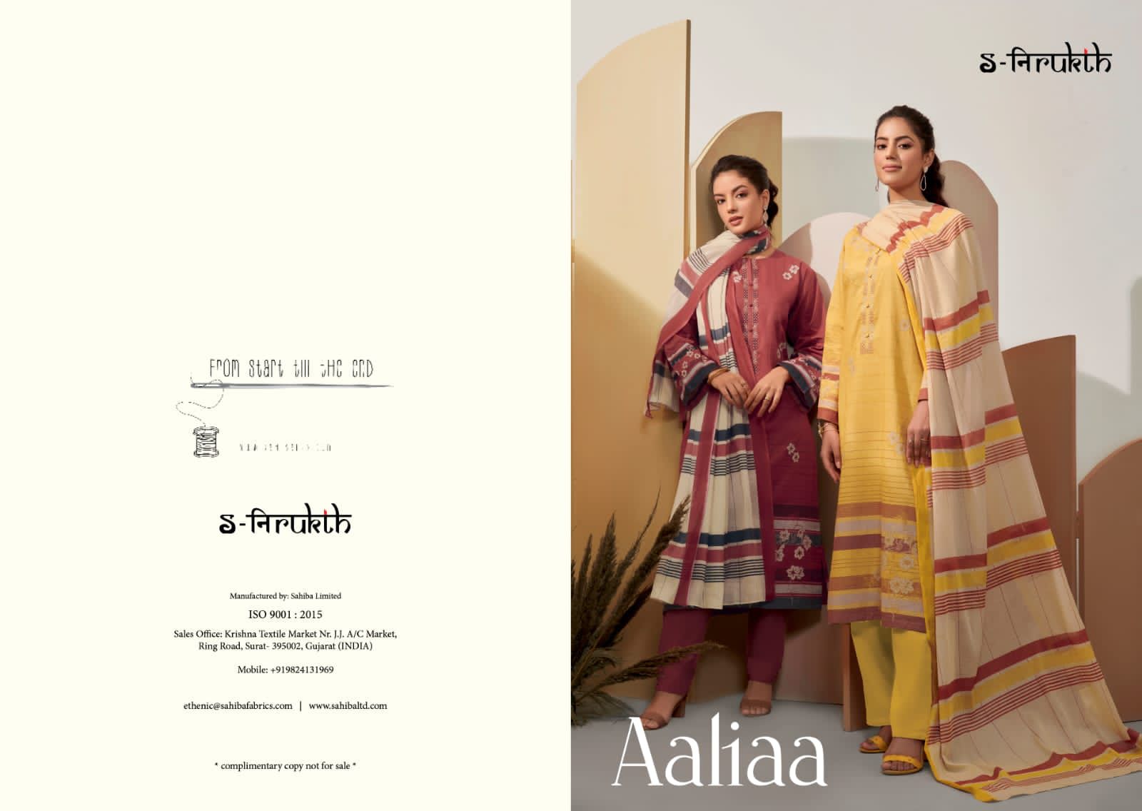 Buy Online Aaliaa By S Nirukth Designer Cotton Suit Wholesale Supplier Traders In Surat 8 Pcs of Full Catalogue at Wholesale Price. Looking for Aaliaa By S Nirukth Designer Cotton Suit Wholesale Supplier Traders In Surat Full Catalouge at Best Price? Buy Now Aaliaa By S Nirukth Designer Cotton Suit Wholesale Supplier Traders In Surat at Wholesale Rate of Rs 7160 with Total 8 Pcs from authroized dealer and supplier of SAHIBA Brand. Cost of Each piece is just only Rs 895 which is very low and affordable price to resale the product in your retail store ,This is Surat based Wholesale Supplier & Dealer of SAHIBA Brand. Click on Brand name to Know more about SAHIBA Brand's products.Call or Whatsapp on 9898838984 for booking or enquiry