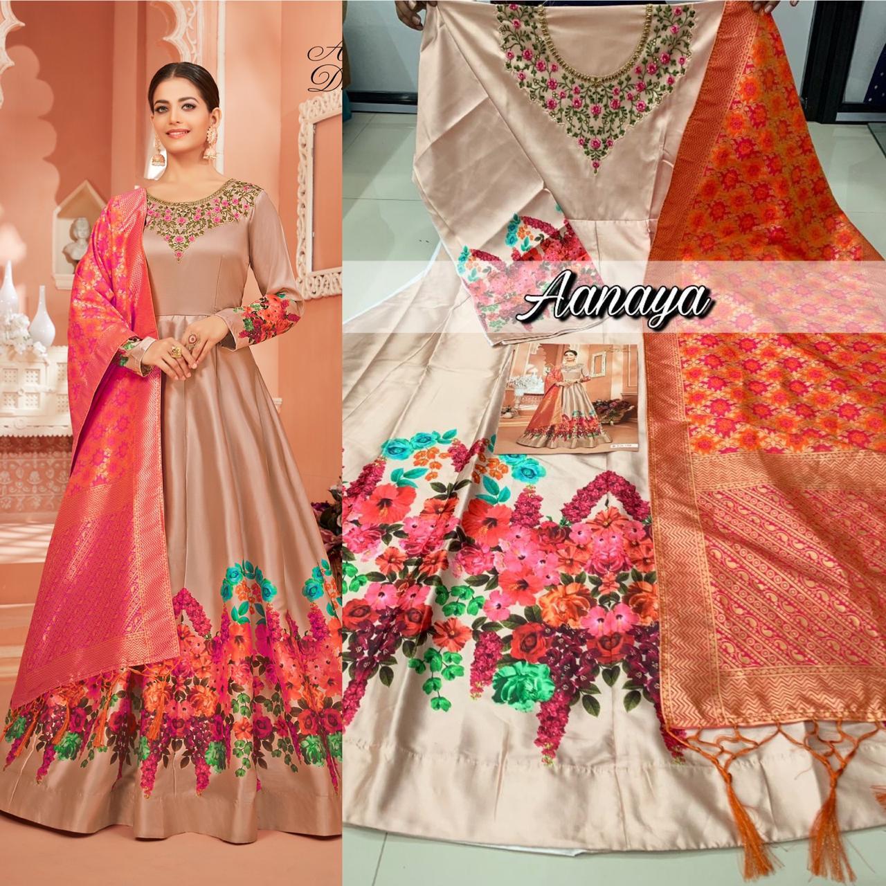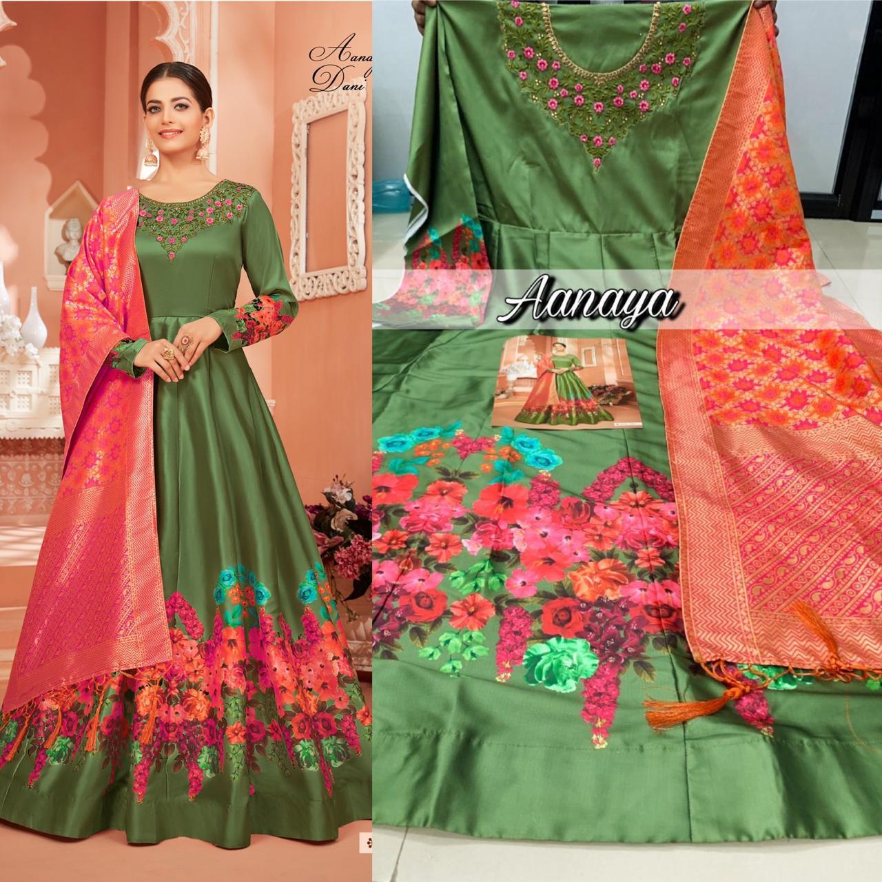 Dear sir, We are launching our most proffered catalog ?AANAYA 1300 SERIES (VOL-113)? ?Top. Â? Monga Satin Silk ?Bottom- Santool ?? Dupatta Â?Jacquard Duppatta Price :-1??7??9??5?? Rs Dispatch ready to ship GST 5 Percent Extra This design can stich upto 44 " size ?Hurry up..Hurry upÂ? ?Booking started from nowÂ??? * set & loose & Singel * 100+ singles |