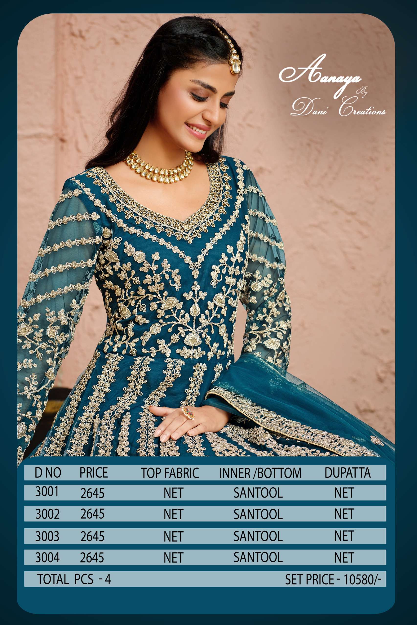 Buy Online AANAYA 3000 SERIES VOL 130 by Dani creation gown collection manufacturer surat 4 Pcs of Full Catalogue at Wholesale Price. Looking for AANAYA 3000 SERIES VOL 130 by Dani creation gown collection manufacturer surat Full Catalouge at Best Price? Buy Now AANAYA 3000 SERIES VOL 130 by Dani creation gown collection manufacturer surat at Wholesale Rate of Rs 10580 with Total 4 Pcs from authroized dealer and supplier of Dani Creation Brand. Cost of Each piece is just only Rs 2645 which is very low and affordable price to resale the product in your retail store ,This is Surat based Wholesale Supplier & Dealer of Dani Creation Brand. Click on Brand name to Know more about Dani Creation Brand's products.Call or Whatsapp on 9898838984 for booking or enquiry