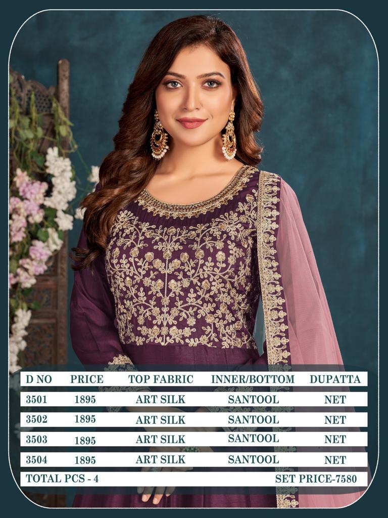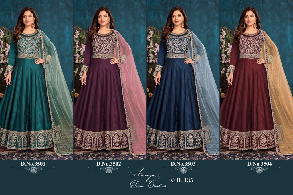 Buy Online Aanaya 3500 Series Vol 135 By Dani Creation 4 Pcs of Full Catalogue at Wholesale Price. Looking for Aanaya 3500 Series Vol 135 By Dani Creation Full Catalouge at Best Price? Buy Now Aanaya 3500 Series Vol 135 By Dani Creation at Wholesale Rate of Rs 7580 with Total 4 Pcs from authroized dealer and supplier of Brand. Cost of Each piece is just only Rs 1895 which is very low and affordable price to resale the product in your retail store ,This is Surat based Wholesale Supplier & Dealer of Brand. Click on Brand name to Know more about Brand's products.Call or Whatsapp on 9898838984 for booking or enquiry