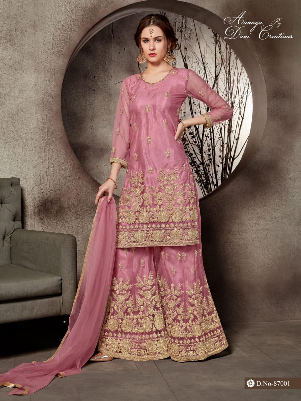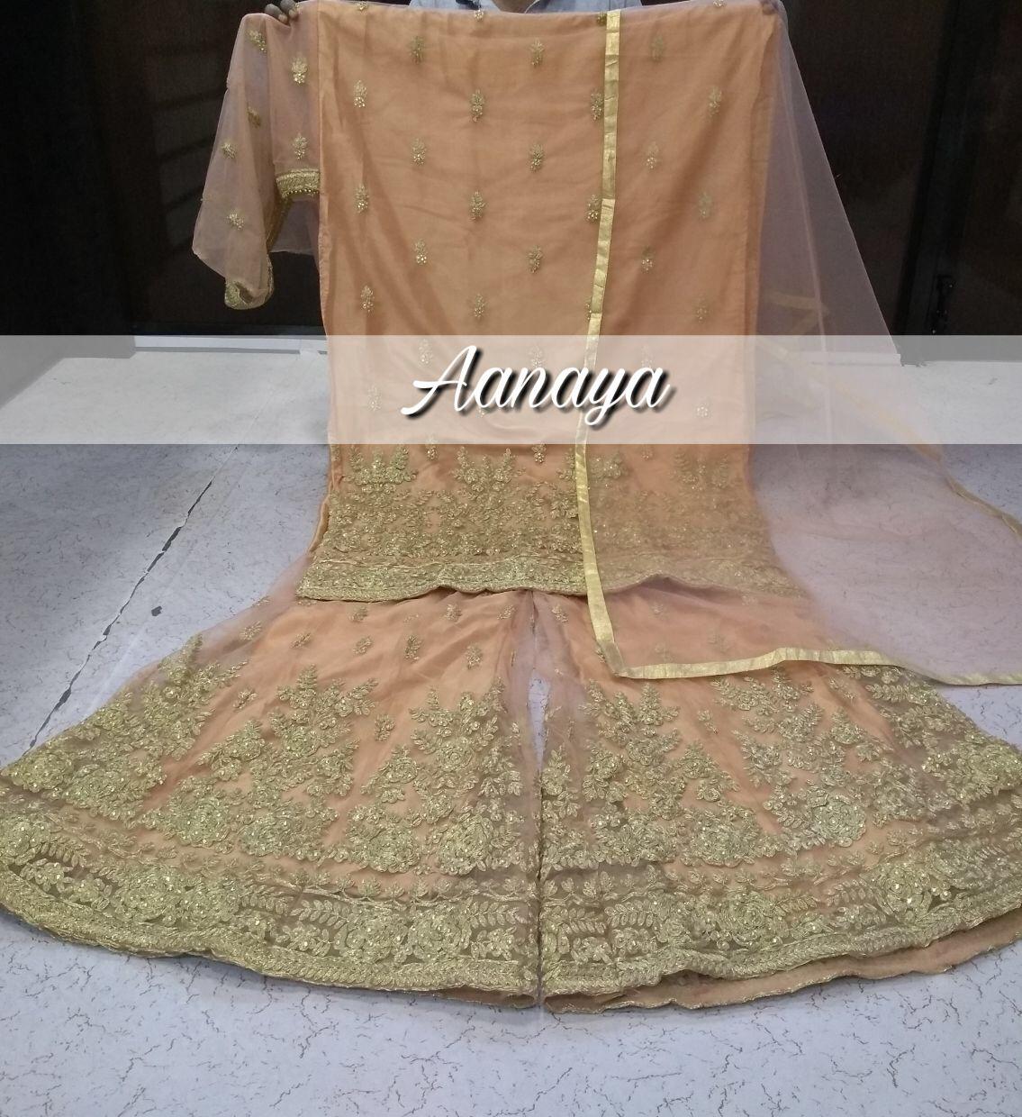 ?AANAYA 87000 (vol-87)? ?Top. Â? net with santool inner ?Bottom- net sharara with santool inner ?? Dupatta Â?Net Price :-1995 per pcs . GST 5 Percent Extra. * set & loose & Singel * Delivery- Running Singel Available. Single Extra 100 |