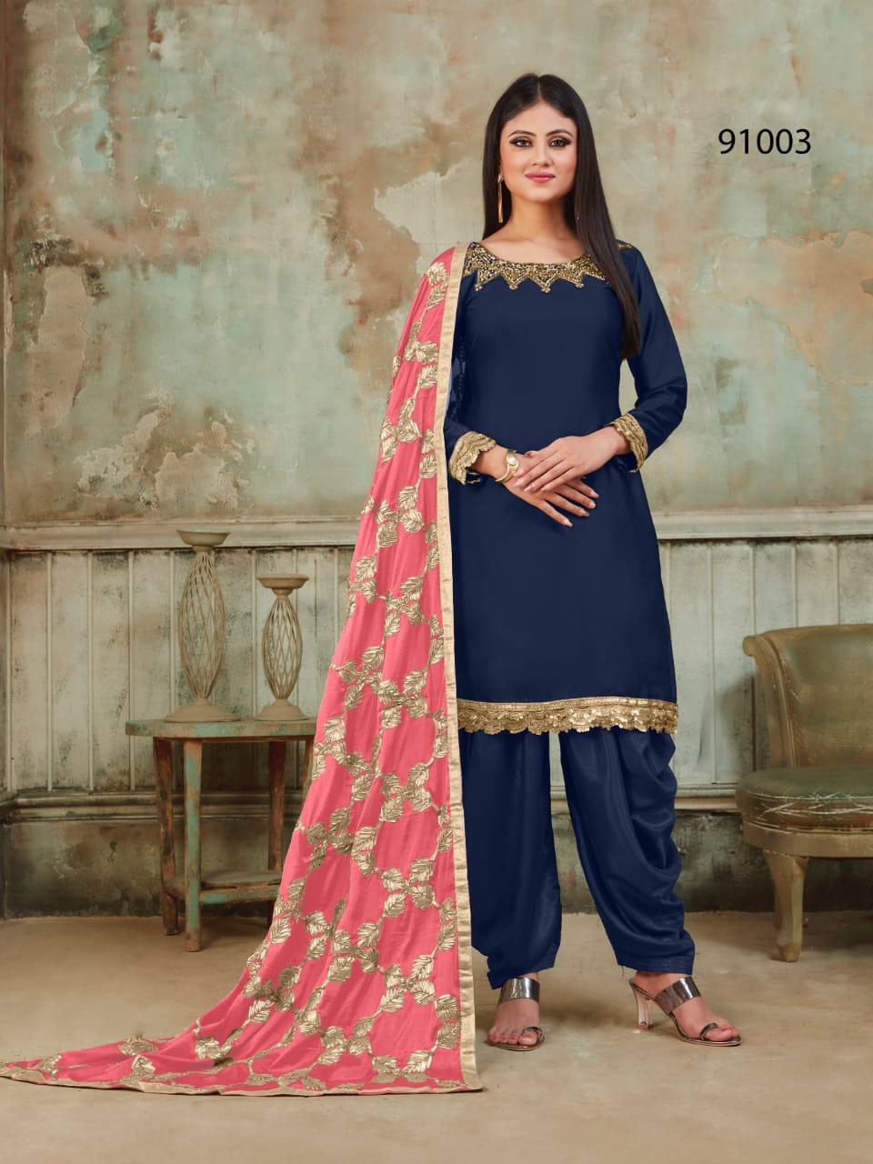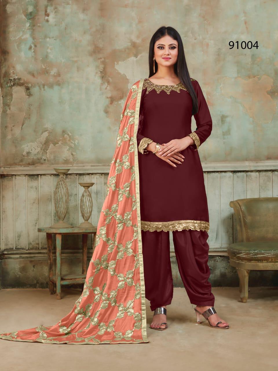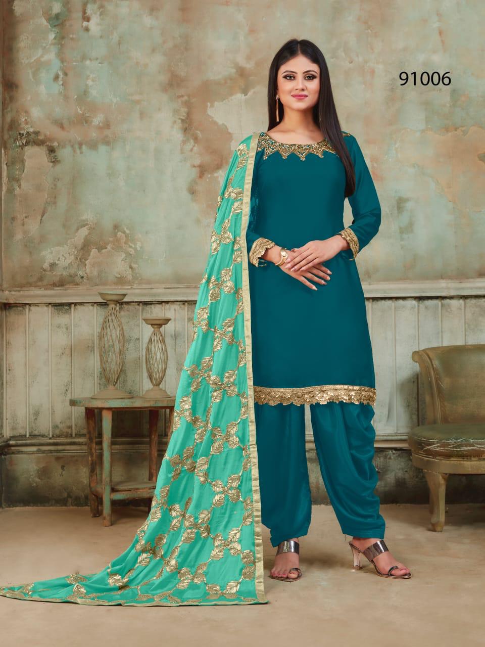 Dear sir, We are launching our most proffered catalog ?AANAYA 91000 (vol-91)? ?Top. Â? Tanchoi satin(fancy satin based fabric) ?Bottom- Santool ?? Dupatta Â?chinnon with real gota lace work Price :-1495 /-Rs * set & Loose & Singel * Single Extra 100 Dispatch from 26/08/2019 Product USP -Product came with hand work ( Khatli work )in top & gota work in duppatta GST 5 Percent Extra |