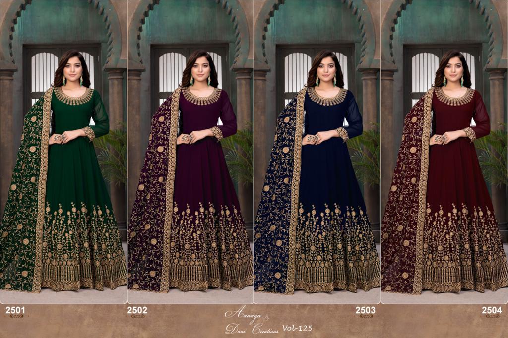 Buy Online Aanaya Vol 125 By Dani Creation 4 Pcs of Full Catalogue at Wholesale Price. Looking for Aanaya Vol 125 By Dani Creation Full Catalouge at Best Price? Buy Now Aanaya Vol 125 By Dani Creation at Wholesale Rate of Rs 7580 with Total 4 Pcs from authroized dealer and supplier of Brand. Cost of Each piece is just only Rs 1895 which is very low and affordable price to resale the product in your retail store ,This is Surat based Wholesale Supplier & Dealer of Brand. Click on Brand name to Know more about Brand's products.Call or Whatsapp on 9898838984 for booking or enquiry