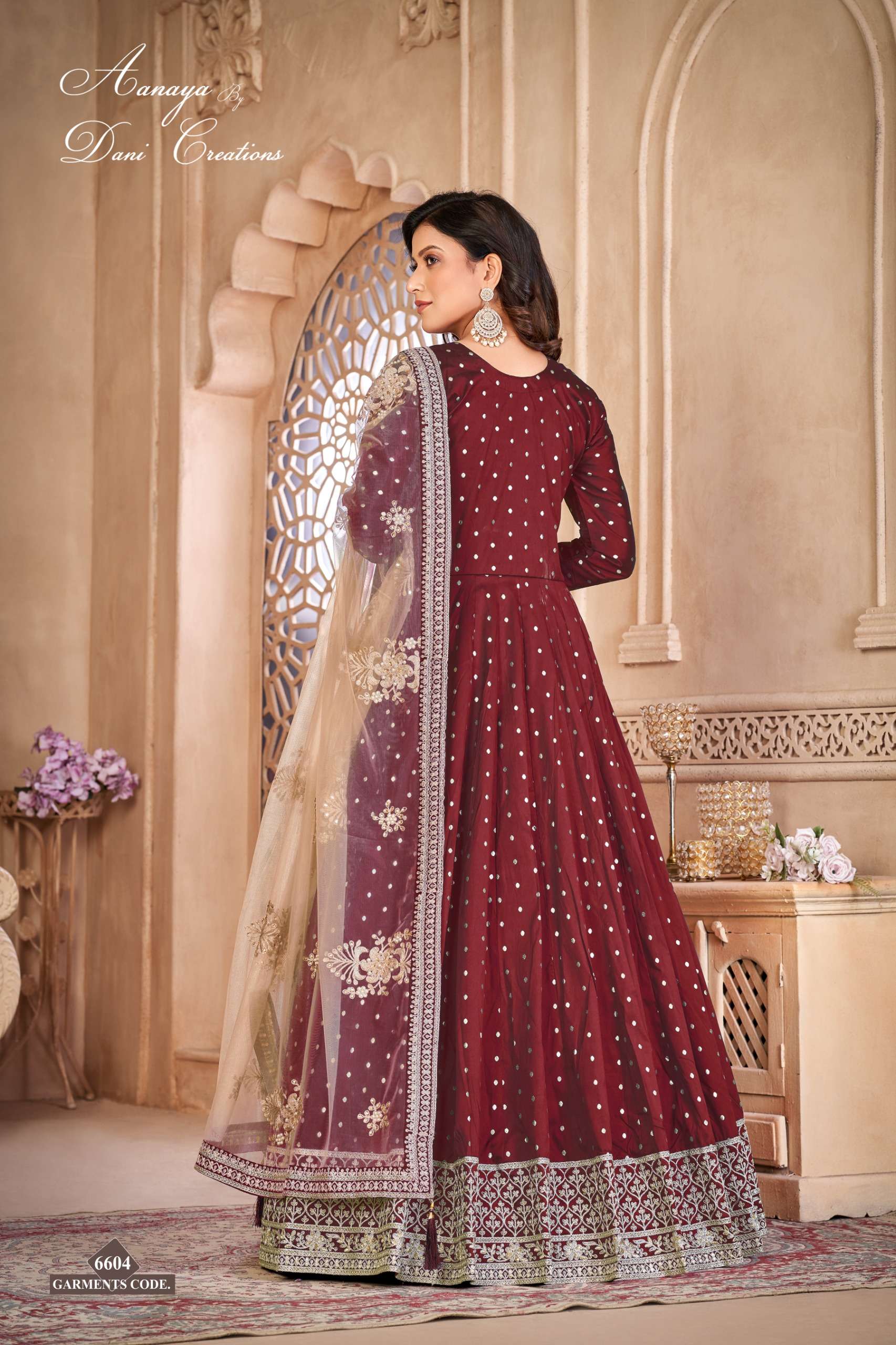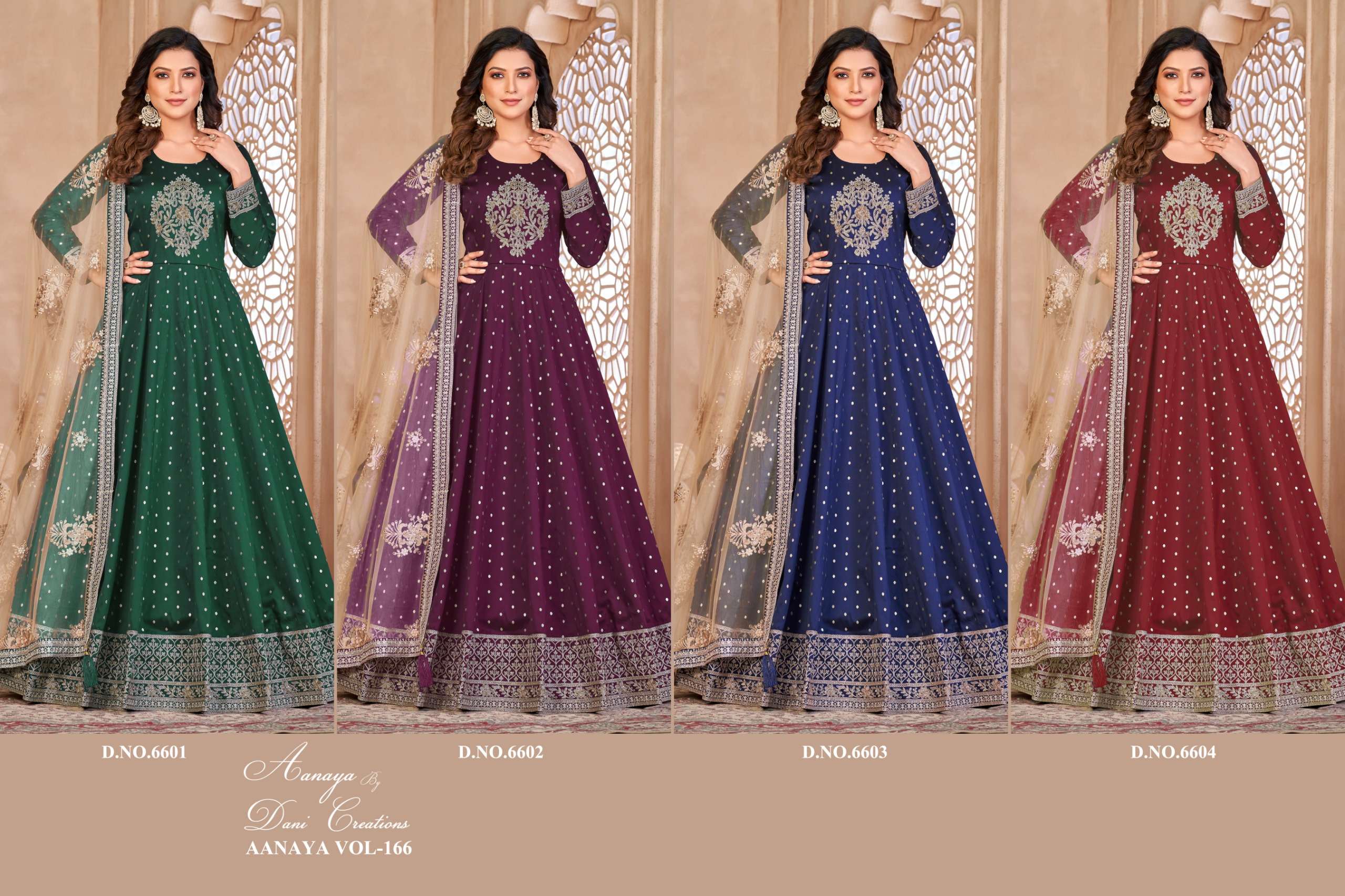 Buy Online AANAYA VOL 166 6600 series by dani creation Gown collection manufacturer surat 4 Pcs of Full Catalogue at Wholesale Price. Looking for AANAYA VOL 166 6600 series by dani creation Gown collection manufacturer surat Full Catalouge at Best Price? Buy Now AANAYA VOL 166 6600 series by dani creation Gown collection manufacturer surat at Wholesale Rate of Rs 7580 with Total 4 Pcs from authroized dealer and supplier of Dani Creation Brand. Cost of Each piece is just only Rs 1895 which is very low and affordable price to resale the product in your retail store ,This is Surat based Wholesale Supplier & Dealer of Dani Creation Brand. Click on Brand name to Know more about Dani Creation Brand's products.Call or Whatsapp on 9898838984 for booking or enquiry