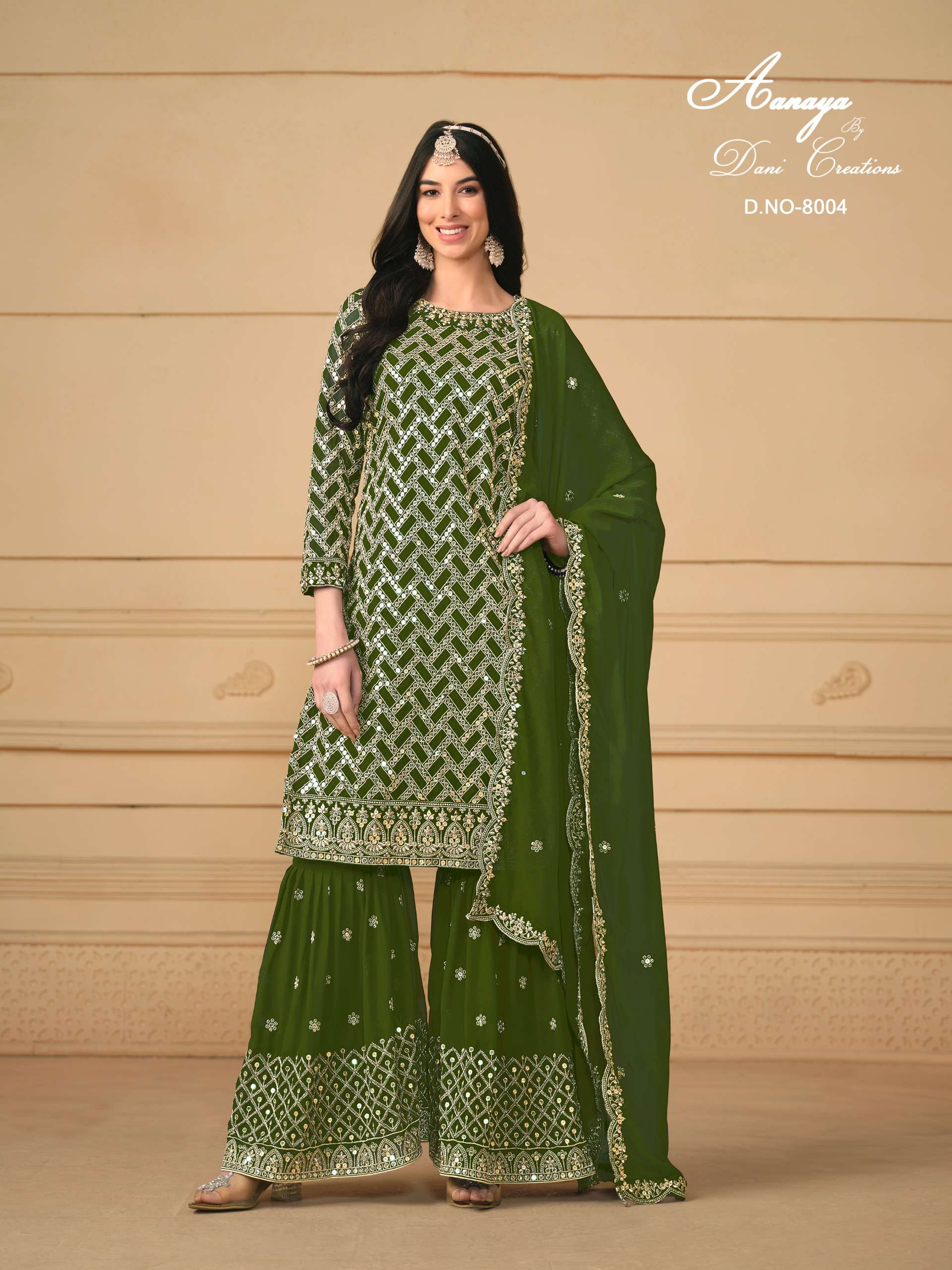 Buy Online AANAYA VOL 180 By Dani creation Faux Georgette suit collection manufacturer surat 1 Pcs of Full Catalogue at Wholesale Price. Looking for AANAYA VOL 180 By Dani creation Faux Georgette suit collection manufacturer surat Full Catalouge at Best Price? Buy Now AANAYA VOL 180 By Dani creation Faux Georgette suit collection manufacturer surat at Wholesale Rate of Rs 1795 with Total 1 Pcs from authroized dealer and supplier of Dani Creation Brand. Cost of Each piece is just only Rs 1795 which is very low and affordable price to resale the product in your retail store ,This is Surat based Wholesale Supplier & Dealer of Dani Creation Brand. Click on Brand name to Know more about Dani Creation Brand's products.Call or Whatsapp on 9898838984 for booking or enquiry