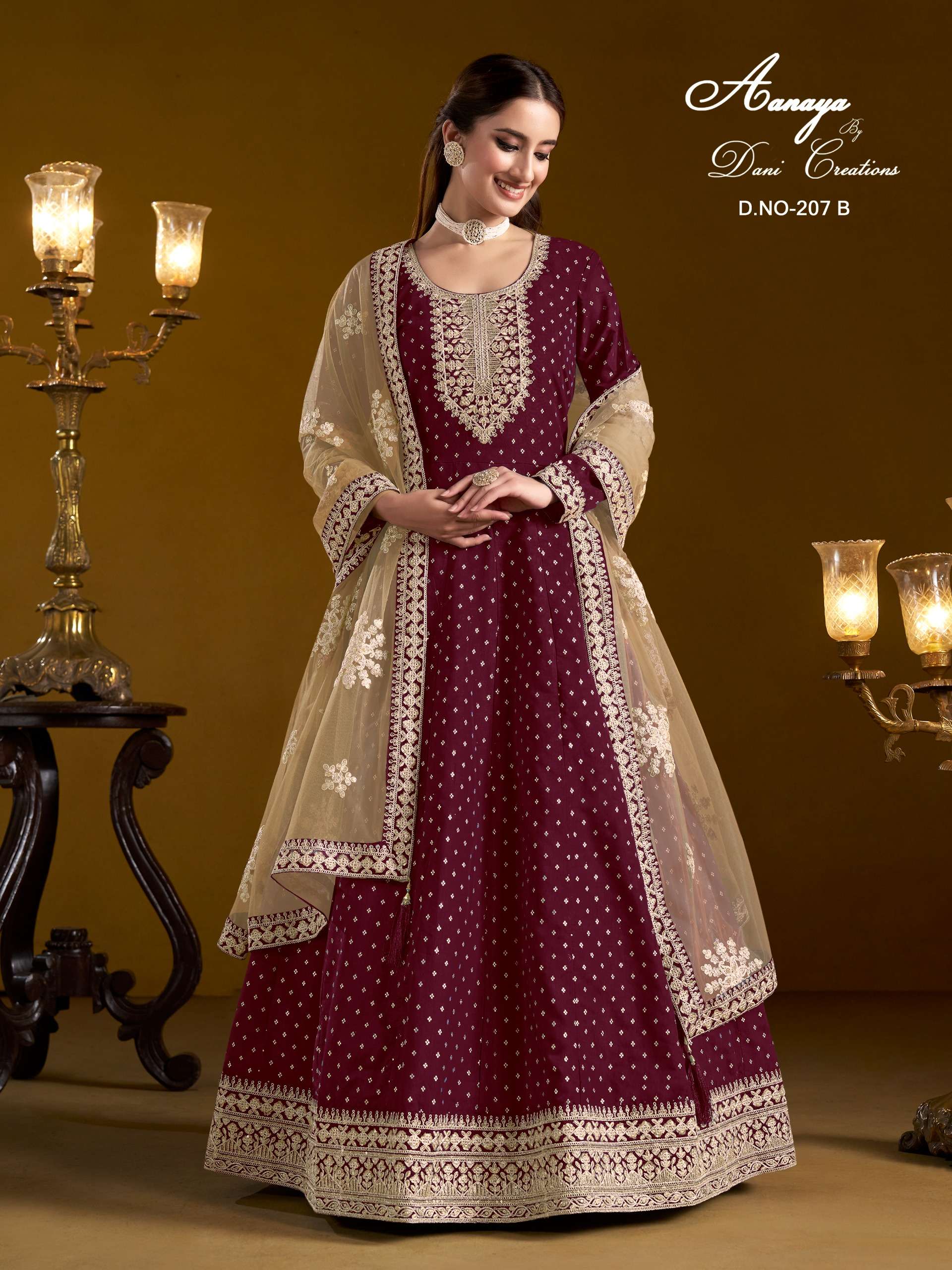 Buy Online AANAYA VOL 207 by dani creation CHANDERI BUTTI gown collection manufacturer surat 4 Pcs of Full Catalogue at Wholesale Price. Looking for AANAYA VOL 207 by dani creation CHANDERI BUTTI gown collection manufacturer surat Full Catalouge at Best Price? Buy Now AANAYA VOL 207 by dani creation CHANDERI BUTTI gown collection manufacturer surat at Wholesale Rate of Rs 7180 with Total 4 Pcs from authroized dealer and supplier of Dani Creation Brand. Cost of Each piece is just only Rs 1795 which is very low and affordable price to resale the product in your retail store ,This is Surat based Wholesale Supplier & Dealer of Dani Creation Brand. Click on Brand name to Know more about Dani Creation Brand's products.Call or Whatsapp on 9898838984 for booking or enquiry