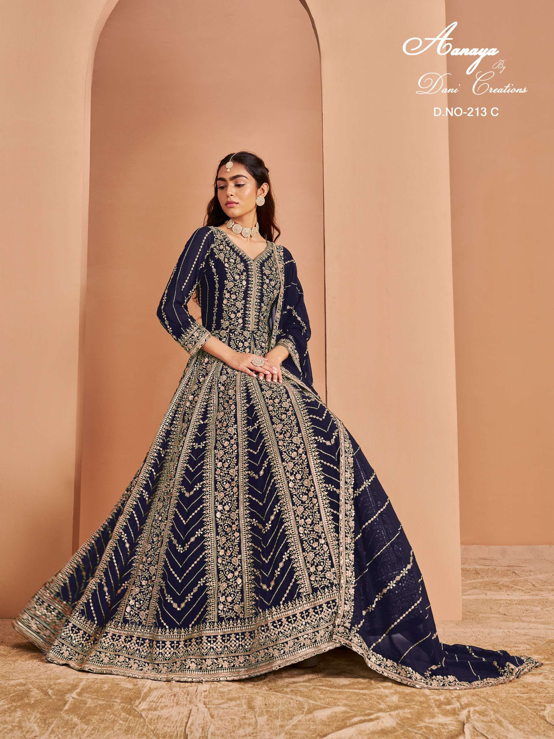 Buy Online AANAYA VOL 213 by Dani creation FAUX GEORGETTE gown collection manufacturer surat 4 Pcs of Full Catalogue at Wholesale Price. Looking for AANAYA VOL 213 by Dani creation FAUX GEORGETTE gown collection manufacturer surat Full Catalouge at Best Price? Buy Now AANAYA VOL 213 by Dani creation FAUX GEORGETTE gown collection manufacturer surat at Wholesale Rate of Rs 14780 with Total 4 Pcs from authroized dealer and supplier of Dani Creation Brand. Cost of Each piece is just only Rs 3695 which is very low and affordable price to resale the product in your retail store ,This is Surat based Wholesale Supplier & Dealer of Dani Creation Brand. Click on Brand name to Know more about Dani Creation Brand's products.Call or Whatsapp on 9898838984 for booking or enquiry