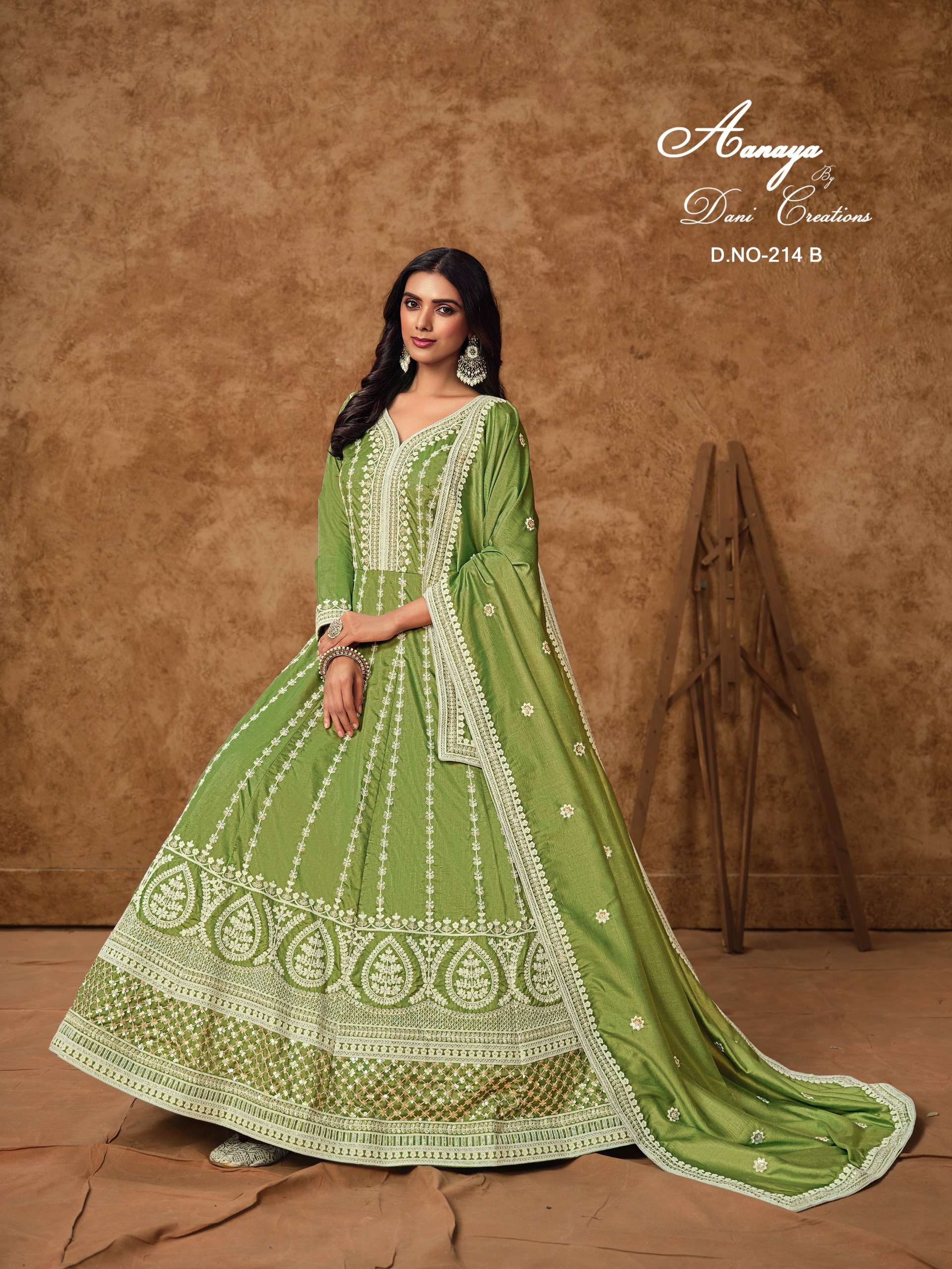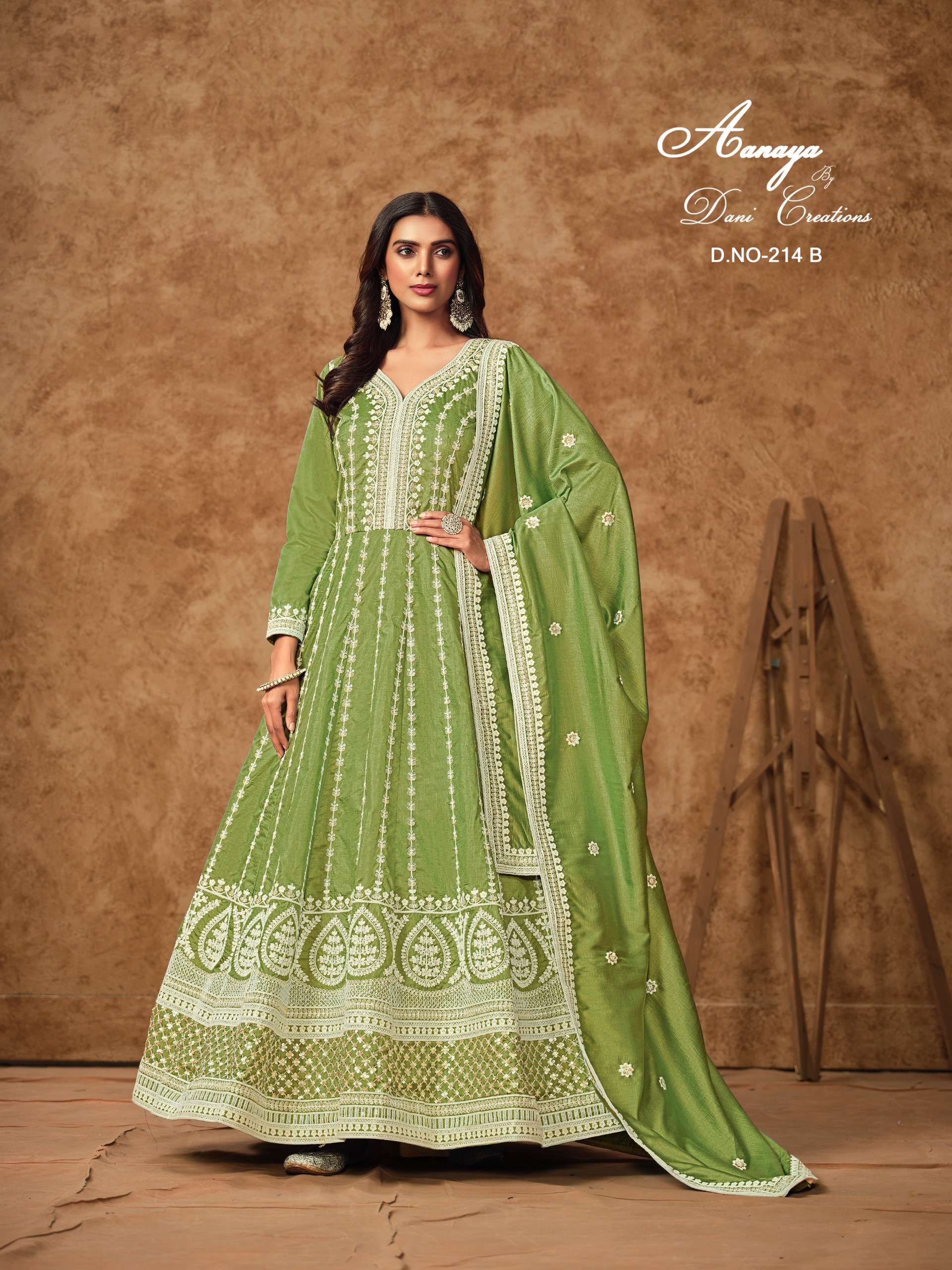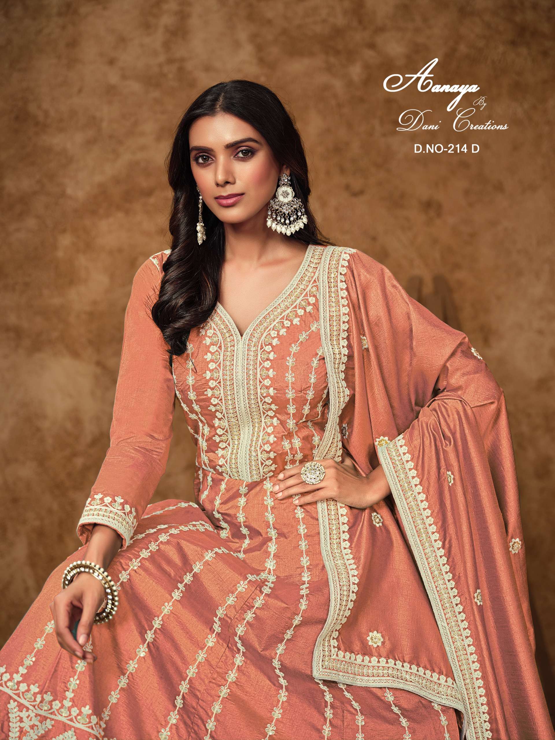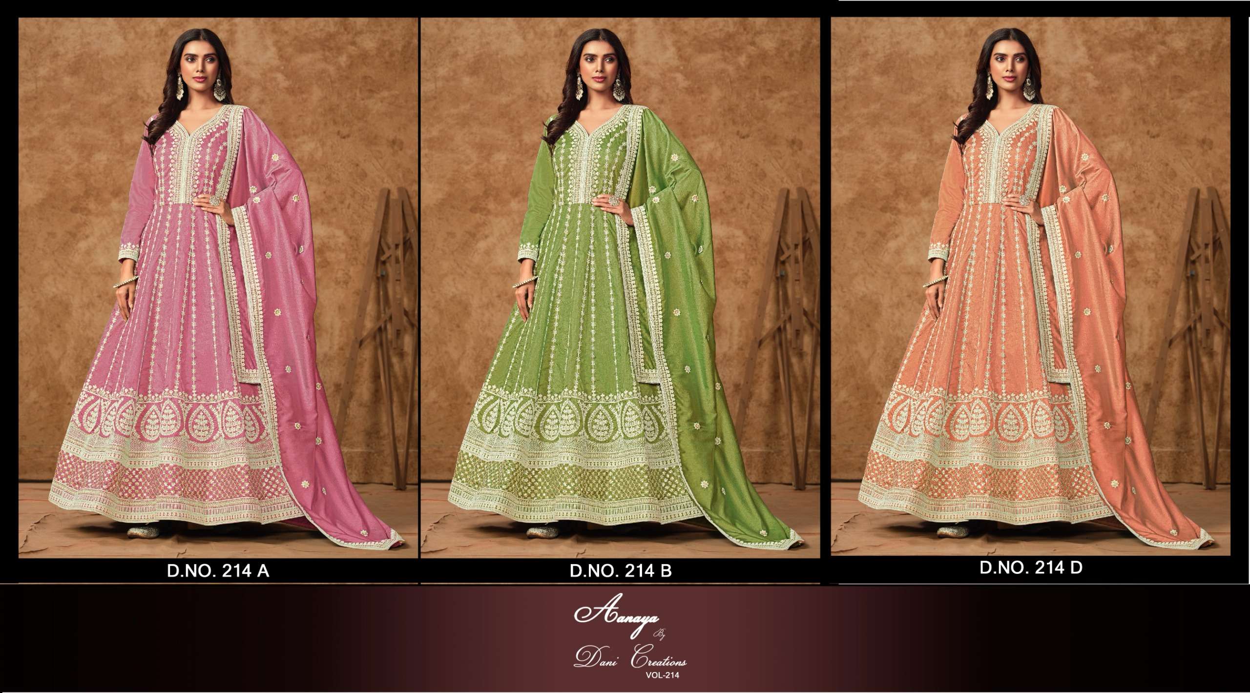 Buy Online AANAYA VOL 214 by Dani creation gown collection manufacturer Surat 3 Pcs of Full Catalogue at Wholesale Price. Looking for AANAYA VOL 214 by Dani creation gown collection manufacturer Surat Full Catalouge at Best Price? Buy Now AANAYA VOL 214 by Dani creation gown collection manufacturer Surat at Wholesale Rate of Rs 9885 with Total 3 Pcs from authroized dealer and supplier of Dani Creation Brand. Cost of Each piece is just only Rs 3295 which is very low and affordable price to resale the product in your retail store ,This is Surat based Wholesale Supplier & Dealer of Dani Creation Brand. Click on Brand name to Know more about Dani Creation Brand's products.Call or Whatsapp on 9898838984 for booking or enquiry