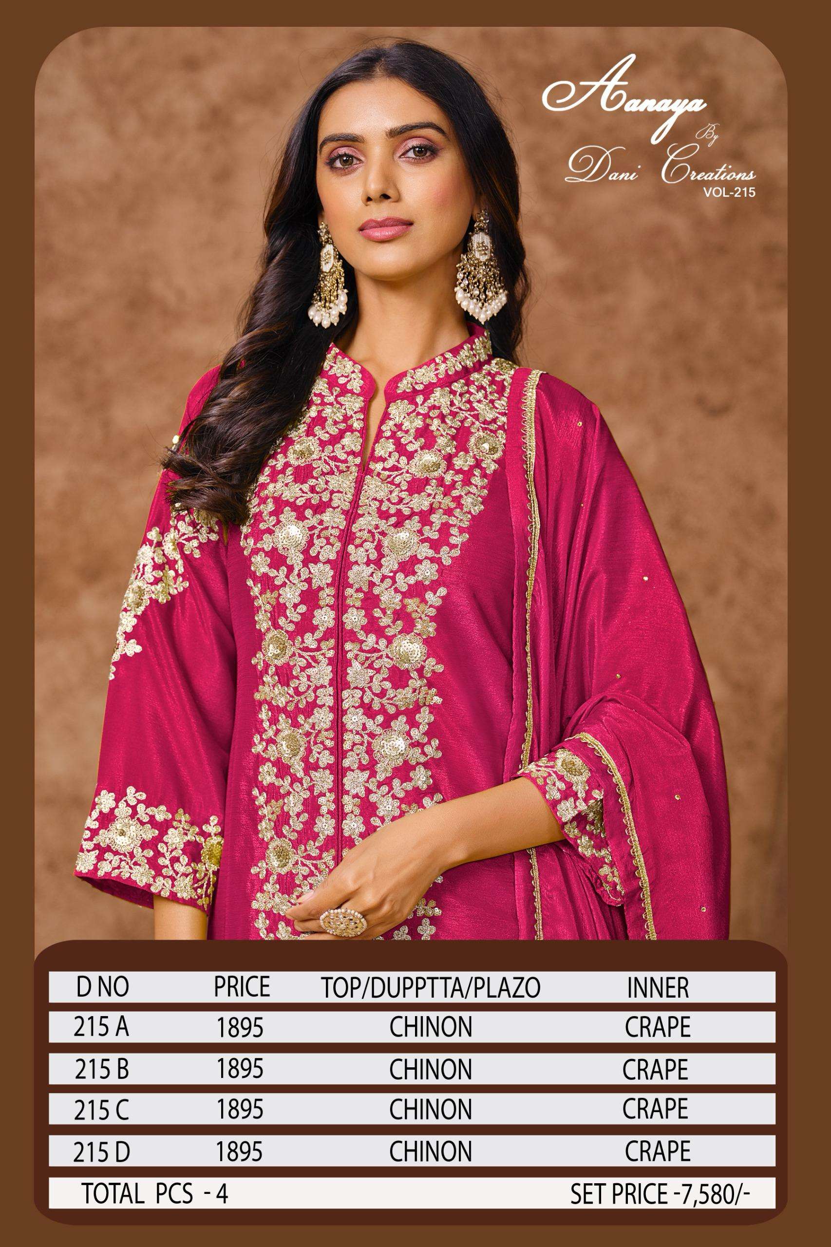 AANAYA VOL 215 by Dani creation Chinon Silk suit collection manufacturer surat