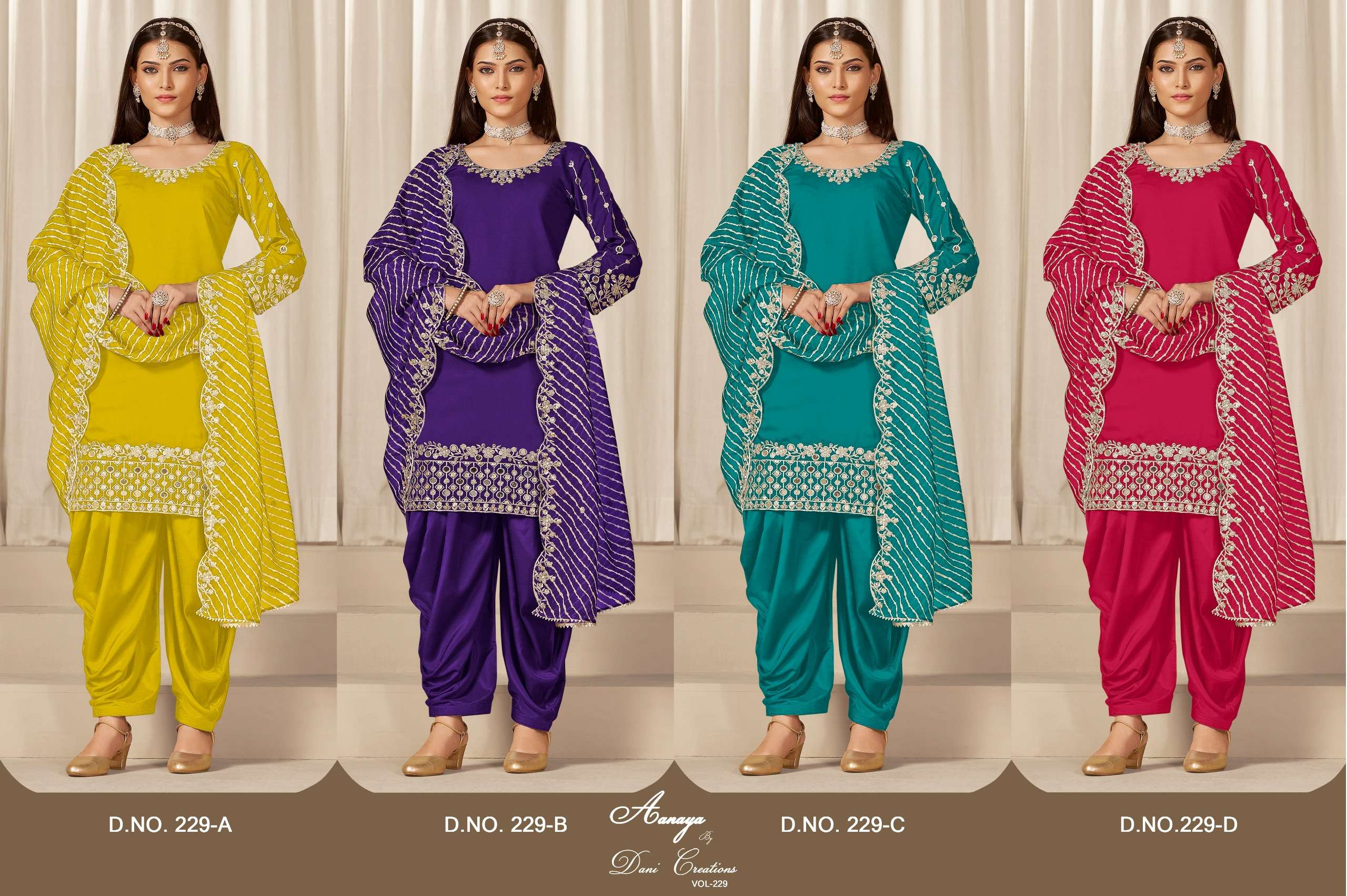 Buy Online AANAYA VOL 229 A by Dani creation suit collection manufacturer Surat 4 Pcs of Full Catalogue at Wholesale Price. Looking for AANAYA VOL 229 A by Dani creation suit collection manufacturer Surat Full Catalouge at Best Price? Buy Now AANAYA VOL 229 A by Dani creation suit collection manufacturer Surat at Wholesale Rate of Rs 4580 with Total 4 Pcs from authroized dealer and supplier of Dani Creation Brand. Cost of Each piece is just only Rs 1145 which is very low and affordable price to resale the product in your retail store ,This is Surat based Wholesale Supplier & Dealer of Dani Creation Brand. Click on Brand name to Know more about Dani Creation Brand's products.Call or Whatsapp on 9898838984 for booking or enquiry