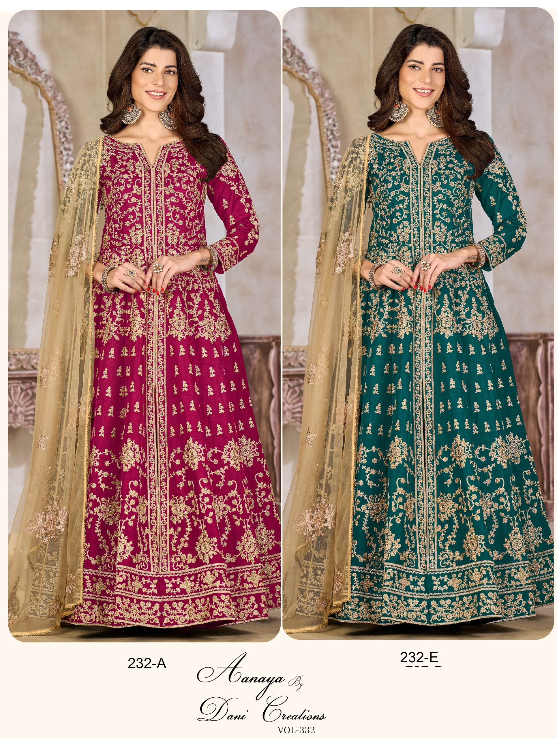 Buy Online AANAYA VOL 232 by Dani creation gown collection manufacturers surat 2 Pcs of Full Catalogue at Wholesale Price. Looking for AANAYA VOL 232 by Dani creation gown collection manufacturers surat Full Catalouge at Best Price? Buy Now AANAYA VOL 232 by Dani creation gown collection manufacturers surat at Wholesale Rate of Rs 4590 with Total 2 Pcs from authroized dealer and supplier of Dani Creation Brand. Cost of Each piece is just only Rs 2295 which is very low and affordable price to resale the product in your retail store ,This is Surat based Wholesale Supplier & Dealer of Dani Creation Brand. Click on Brand name to Know more about Dani Creation Brand's products.Call or Whatsapp on 9898838984 for booking or enquiry
