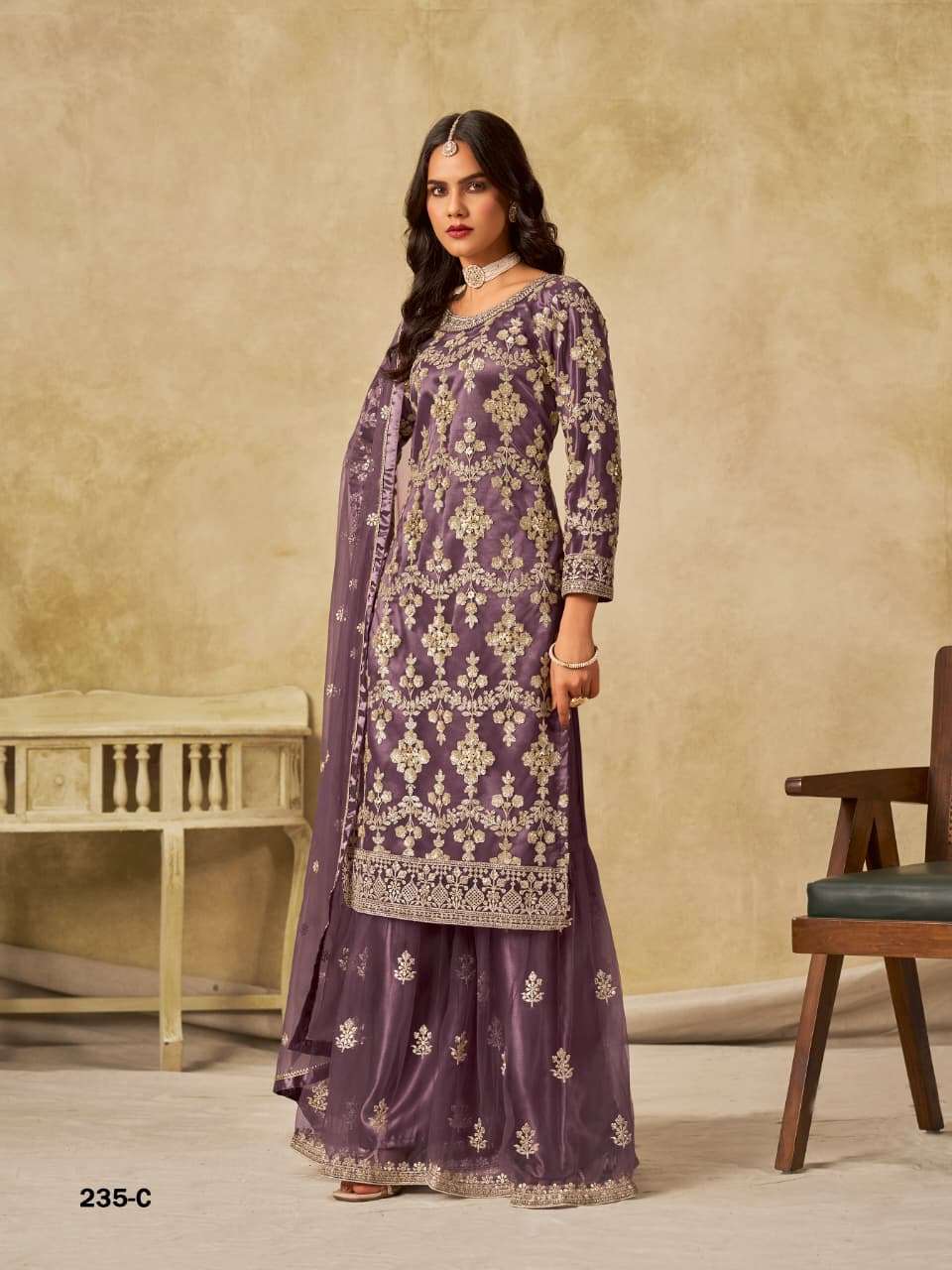 Buy Online AANAYA VOL 235 by Dani creation suit collection manufacturer Surat 4 Pcs of Full Catalogue at Wholesale Price. Looking for AANAYA VOL 235 by Dani creation suit collection manufacturer Surat Full Catalouge at Best Price? Buy Now AANAYA VOL 235 by Dani creation suit collection manufacturer Surat at Wholesale Rate of Rs 6580 with Total 4 Pcs from authroized dealer and supplier of Dani Creation Brand. Cost of Each piece is just only Rs 1645 which is very low and affordable price to resale the product in your retail store ,This is Surat based Wholesale Supplier & Dealer of Dani Creation Brand. Click on Brand name to Know more about Dani Creation Brand's products.Call or Whatsapp on 9898838984 for booking or enquiry