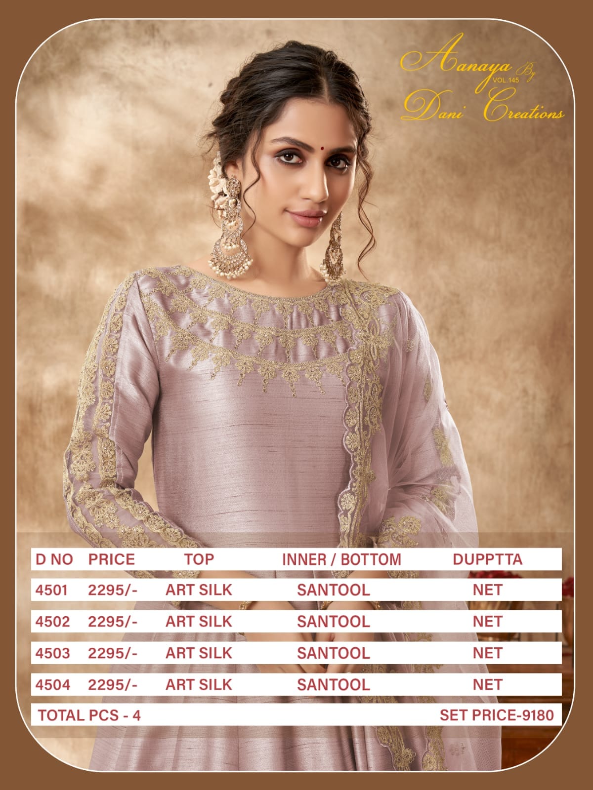 Aanaya Vol 45 4500 Series Dani Creation Designer Gown Suit Single And Set Stockiest And Supplier From Surat