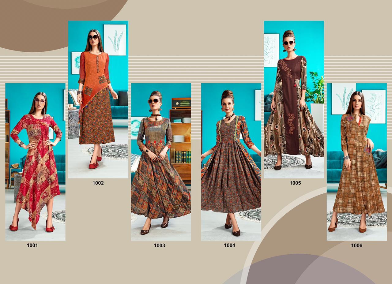 Buy Online Aanchi Vol 1 By Shubh Nx 1001 Series Fancy Reyon Printed Kurti Collection Wholesaler Surat 6 Pcs of Full Catalogue at Wholesale Price. Looking for Aanchi Vol 1 By Shubh Nx 1001 Series Fancy Reyon Printed Kurti Collection Wholesaler Surat Full Catalouge at Best Price? Buy Now Aanchi Vol 1 By Shubh Nx 1001 Series Fancy Reyon Printed Kurti Collection Wholesaler Surat at Wholesale Rate of Rs 4170 with Total 6 Pcs from authroized dealer and supplier of Brand. Cost of Each piece is just only Rs 695 which is very low and affordable price to resale the product in your retail store ,This is Surat based Wholesale Supplier & Dealer of Brand. Click on Brand name to Know more about Brand's products.Call or Whatsapp on 9898838984 for booking or enquiry