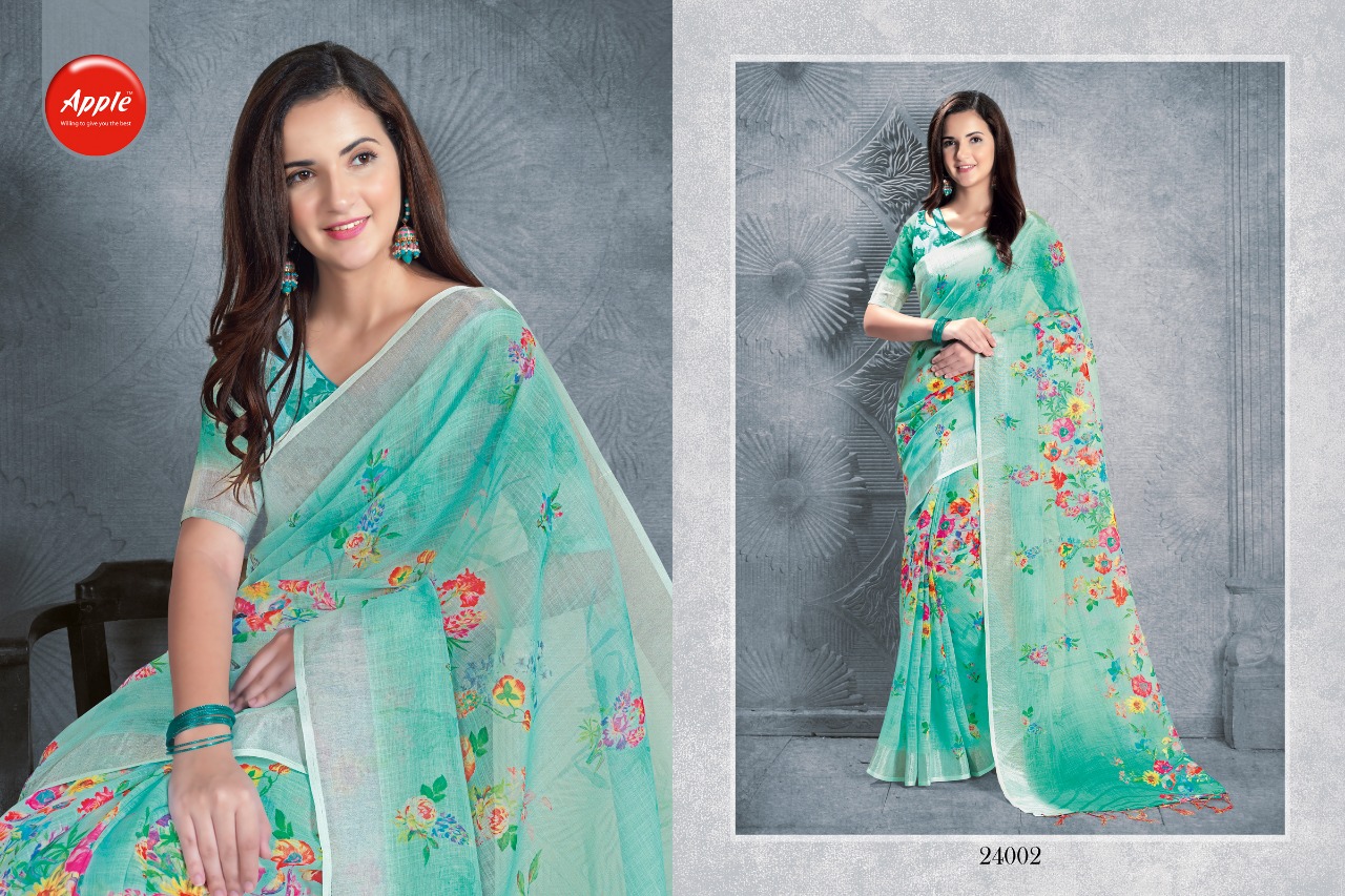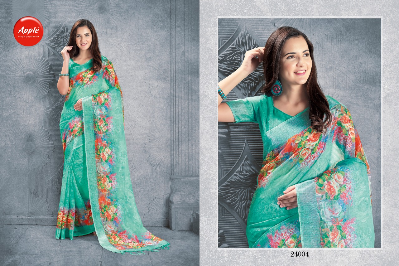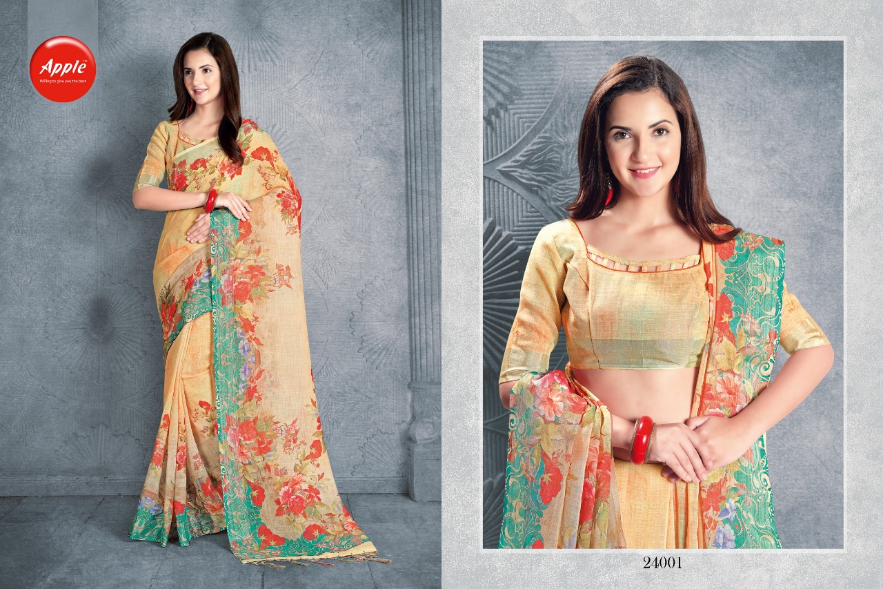 Buy Online Aaradhana Vol 2 By Apple 24001 Series Fancy Linen Digital Printed Saree Catlog Wholesale Dealer Surat 12 Pcs of Full Catalogue at Wholesale Price. Looking for Aaradhana Vol 2 By Apple 24001 Series Fancy Linen Digital Printed Saree Catlog Wholesale Dealer Surat Full Catalouge at Best Price? Buy Now Aaradhana Vol 2 By Apple 24001 Series Fancy Linen Digital Printed Saree Catlog Wholesale Dealer Surat at Wholesale Rate of Rs 10740 with Total 12 Pcs from authroized dealer and supplier of APPLE Brand. Cost of Each piece is just only Rs 895 which is very low and affordable price to resale the product in your retail store ,This is Surat based Wholesale Supplier & Dealer of APPLE Brand. Click on Brand name to Know more about APPLE Brand's products.Call or Whatsapp on 9898838984 for booking or enquiry