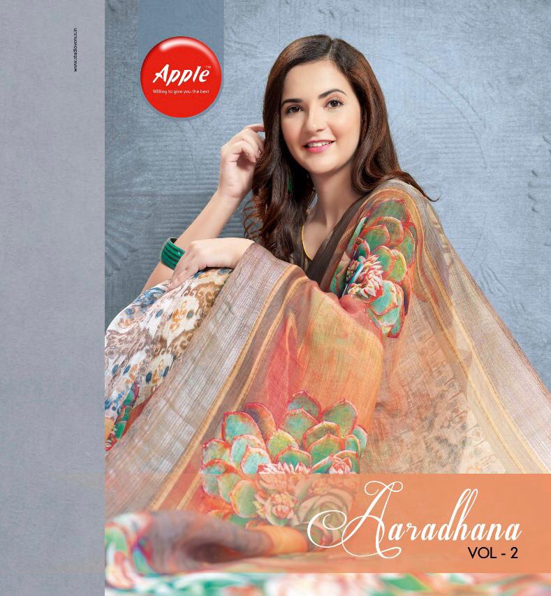 Aaradhna vol-2 by Apple Lilen digital print 12 pcs catlogs Singal matching Set to set GST 5 Percent Extra. Delivery from today Rate-895/- |
