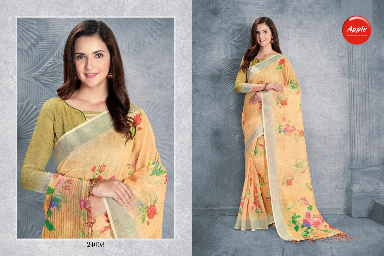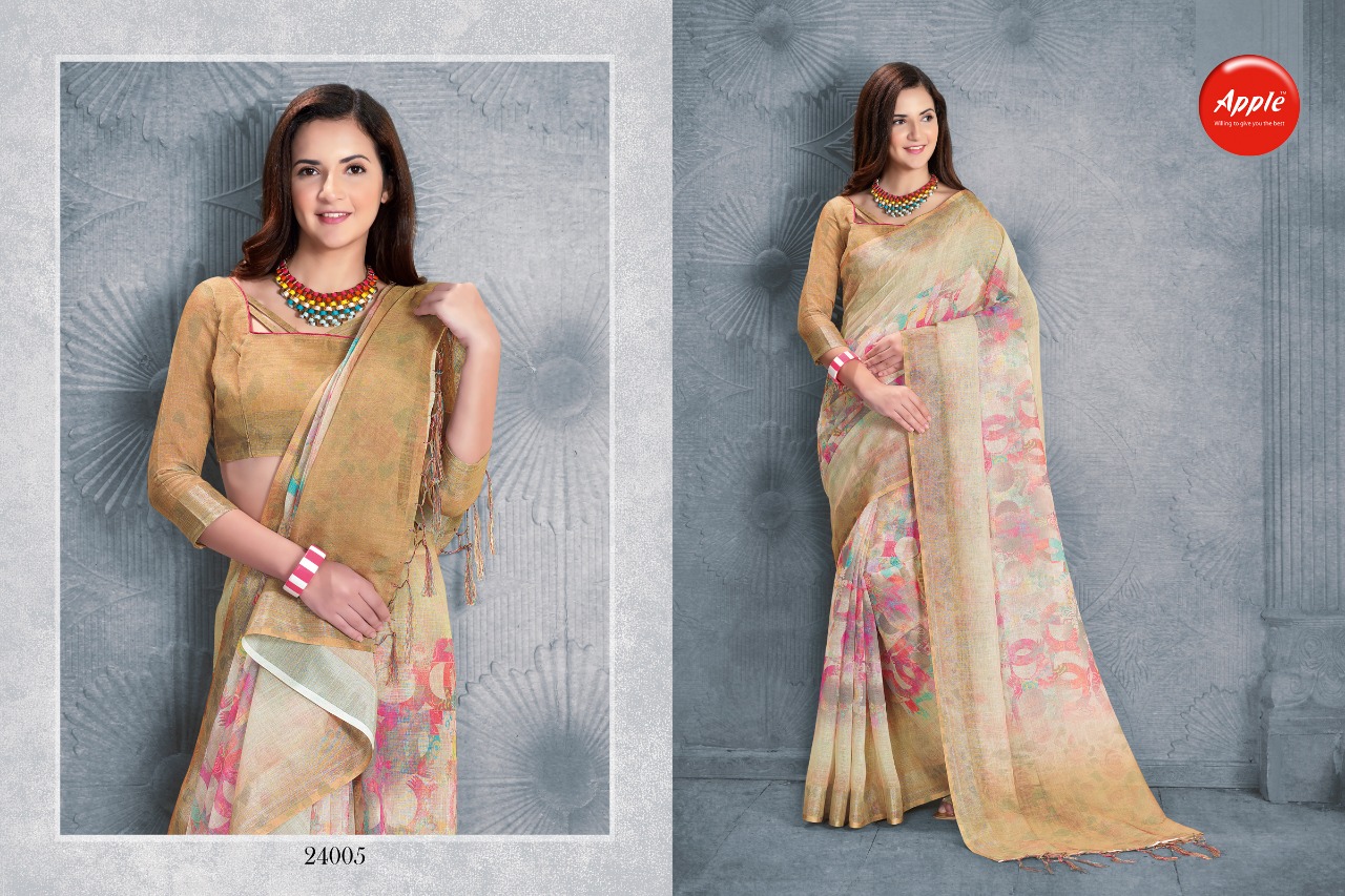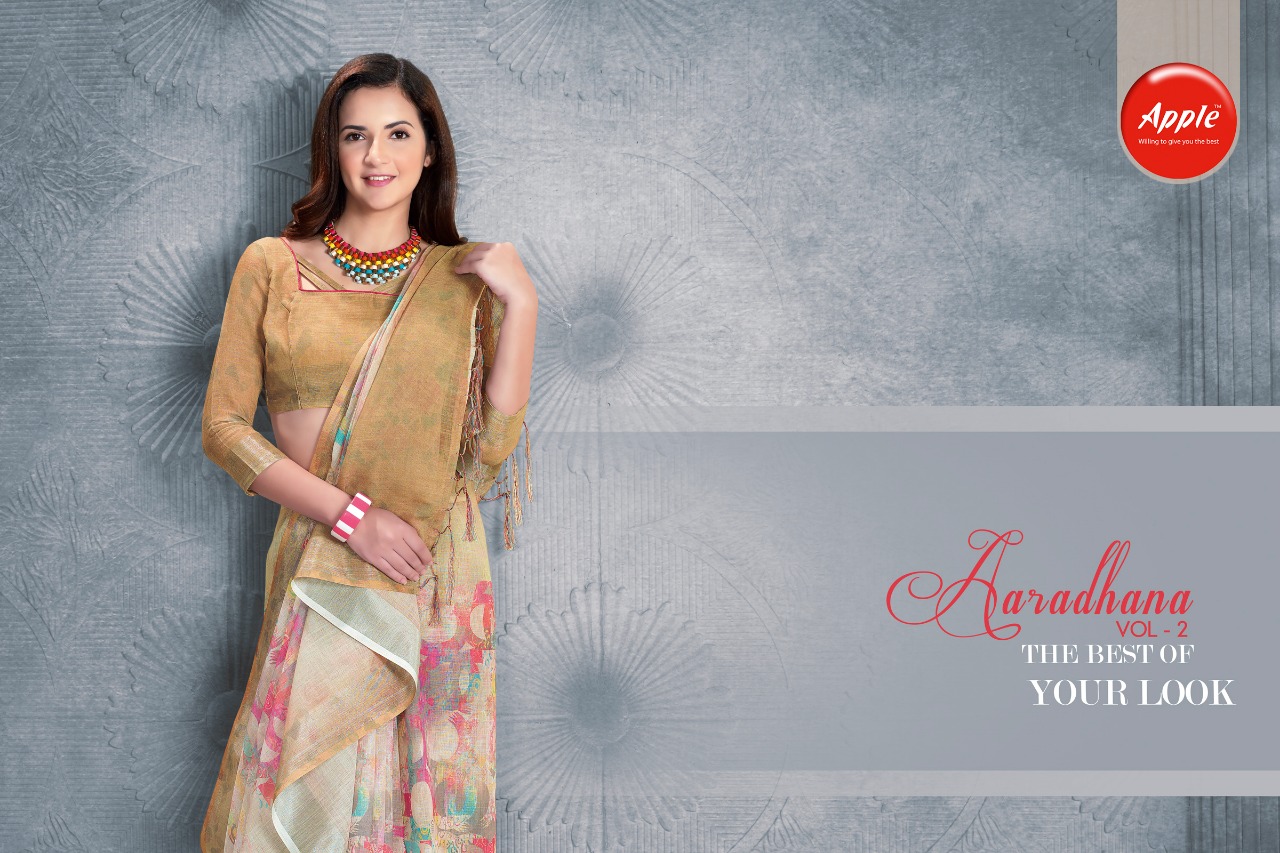 Aaradhana Vol 2 By Apple 24001 Series Fancy Linen Digital Printed Saree Catlog Wholesale Dealer Surat