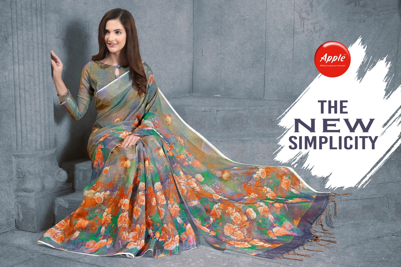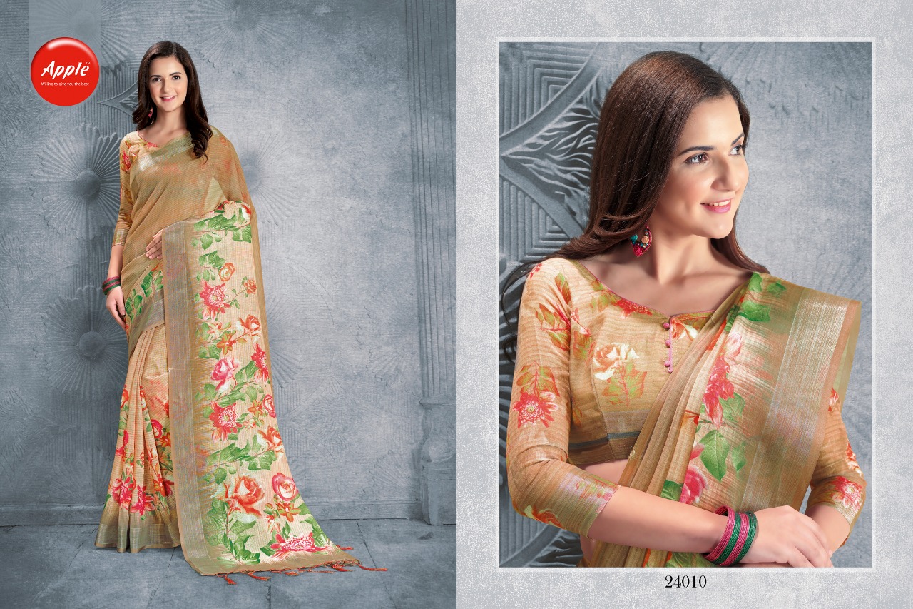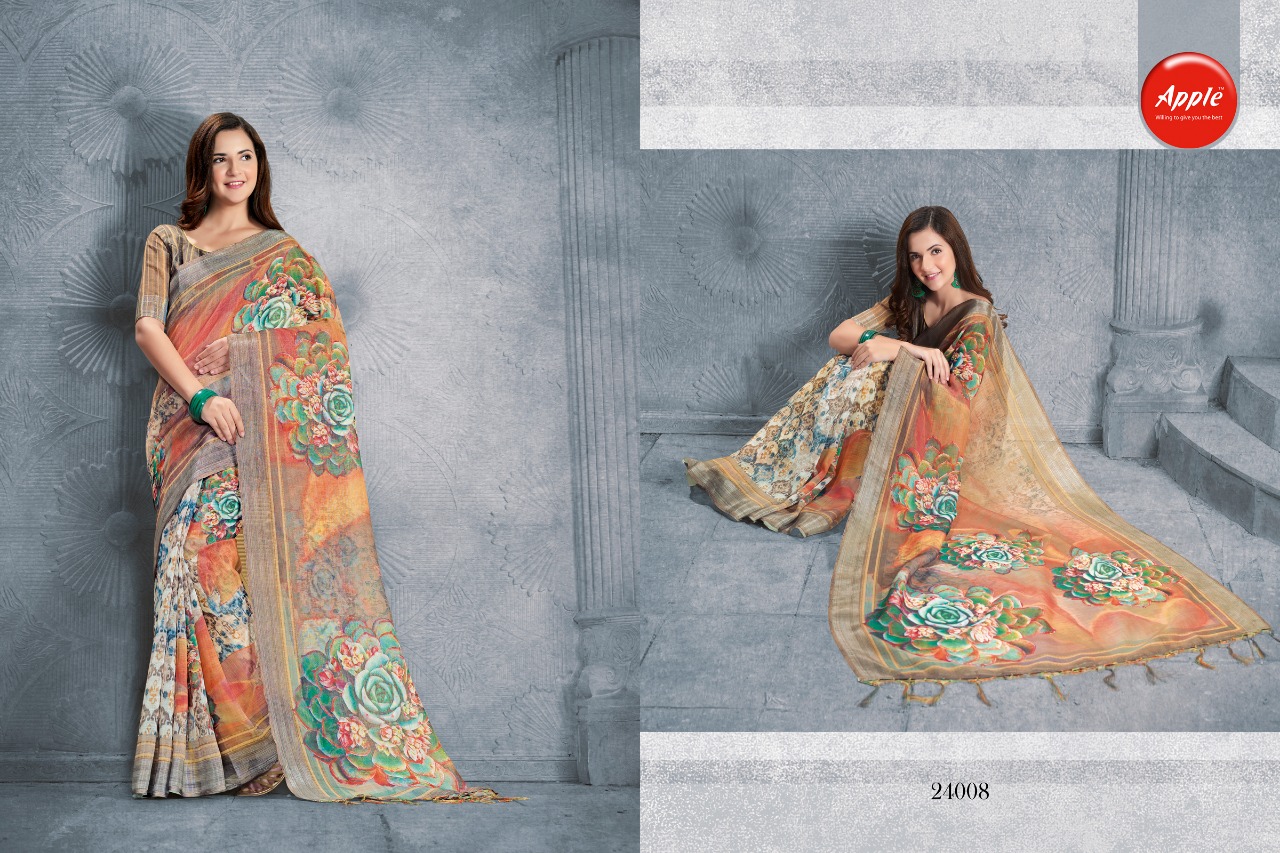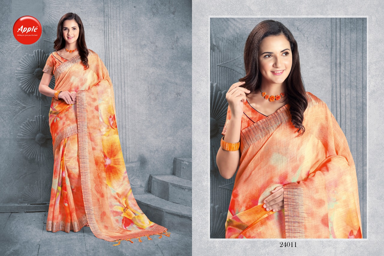 Aaradhana Vol 2 By Apple 24001 Series Fancy Linen Digital Printed Saree Catlog Wholesale Dealer Surat