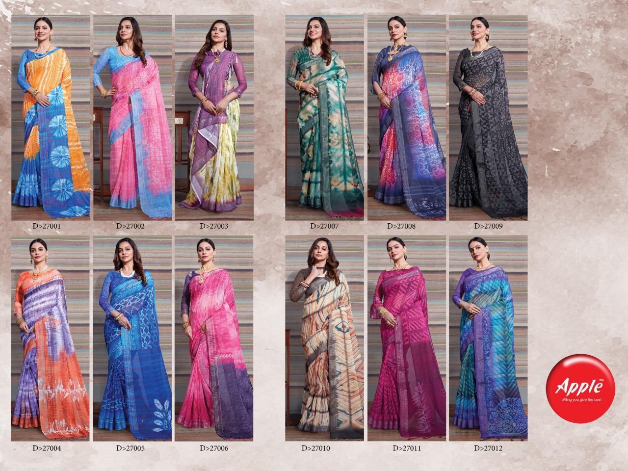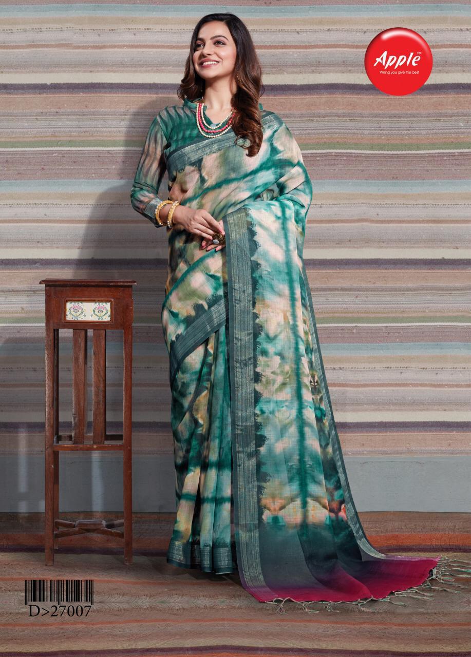 Buy Online Aaradhna Vol 6 By Apple Linen Silk Digital Printed Sarees Wholesale Supplier And Trader Surat 12 Pcs of Full Catalogue at Wholesale Price. Looking for Aaradhna Vol 6 By Apple Linen Silk Digital Printed Sarees Wholesale Supplier And Trader Surat Full Catalouge at Best Price? Buy Now Aaradhna Vol 6 By Apple Linen Silk Digital Printed Sarees Wholesale Supplier And Trader Surat at Wholesale Rate of Rs 9540 with Total 12 Pcs from authroized dealer and supplier of APPLE Brand. Cost of Each piece is just only Rs 795 which is very low and affordable price to resale the product in your retail store ,This is Surat based Wholesale Supplier & Dealer of APPLE Brand. Click on Brand name to Know more about APPLE Brand's products.Call or Whatsapp on 9898838984 for booking or enquiry