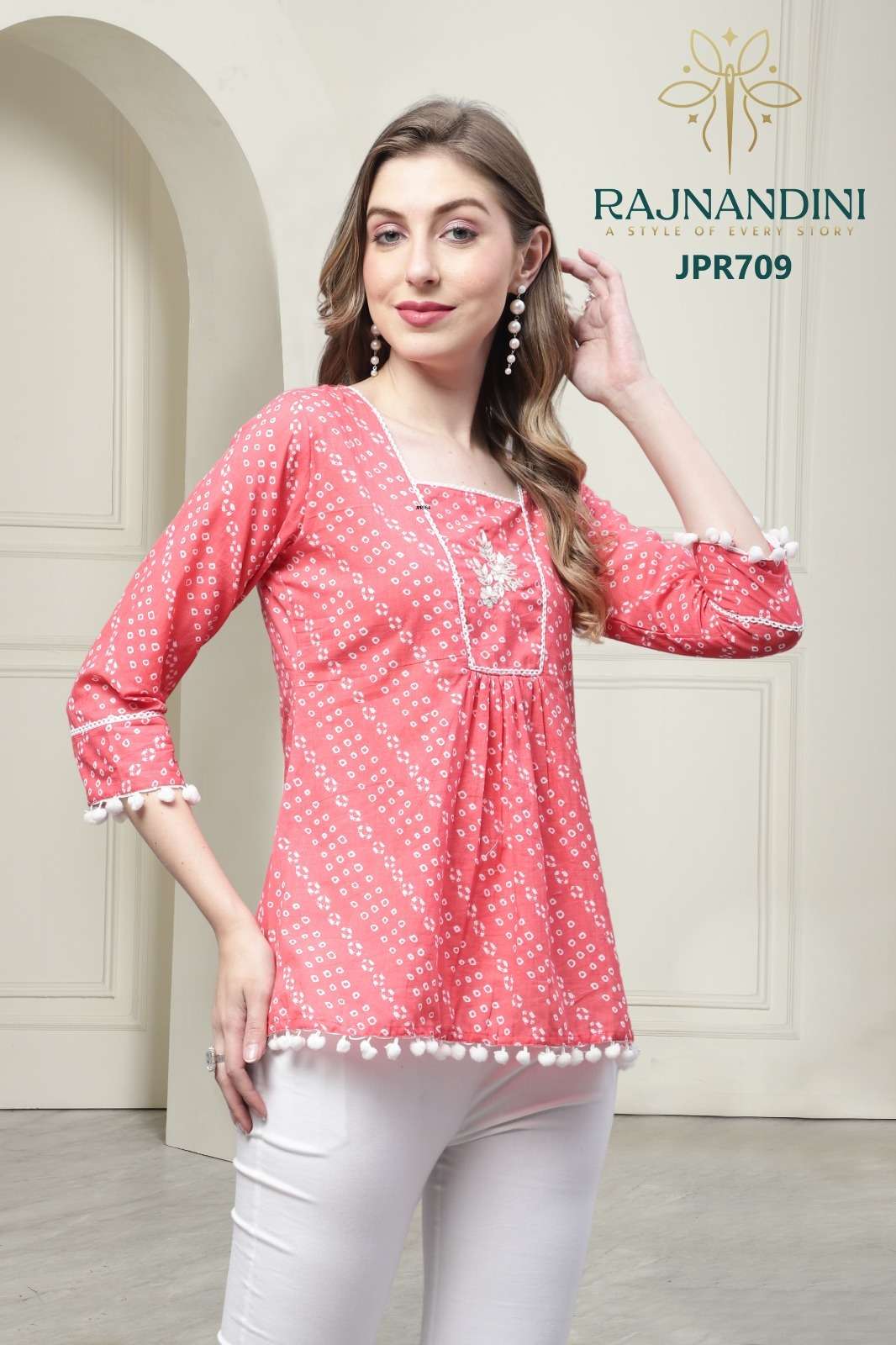 ॐ श्री गणेशाय नमः Summer Special Pure Cambric Cotton Printed Tops with Handwork BRAND NAME – *RAJNANDINI®️* ▪CATALOG NAME – *AARADHYA VOL-21* SERIES - JPR706 TO JPR764 NX 🔸 Fabric Details 🔸 ▪👚:- Pure Cotton ▪Total Design:- 6 ▪Size:- XS-34, S-36, M-38, L-40 , XL-42 , XXL-44 ▪PRICE - 380 /- PER PCS GST EXTRA SINGLE AVAILABLE BOOK YOUR ORDER NOW |