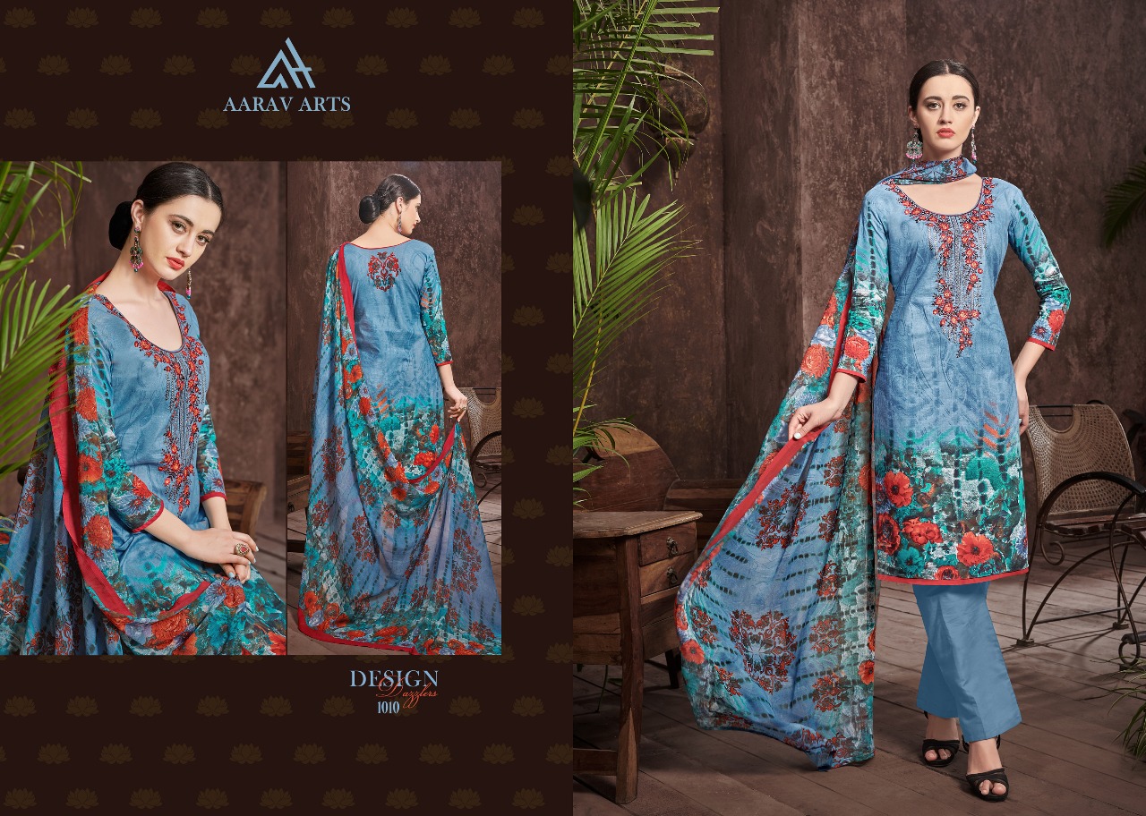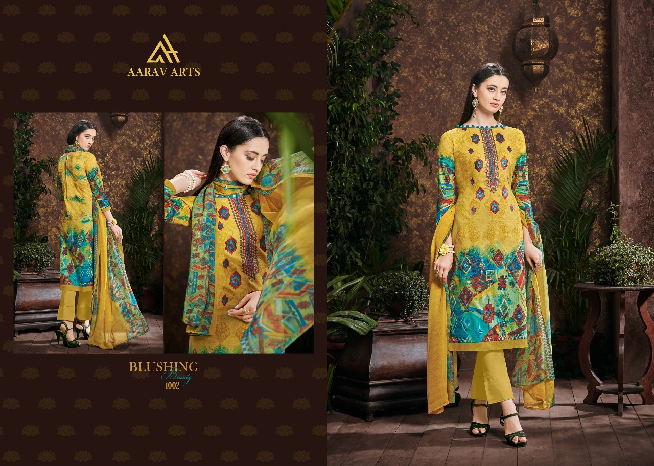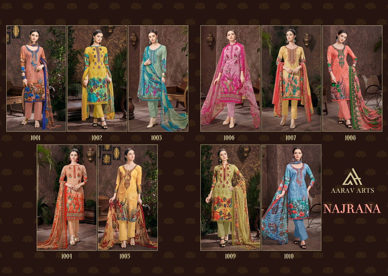 Buy Online Aarav Arts Najrana 1001 Series Cambric Print Suit Catlogue 10 Pcs of Full Catalogue at Wholesale Price. Looking for Aarav Arts Najrana 1001 Series Cambric Print Suit Catlogue Full Catalouge at Best Price? Buy Now Aarav Arts Najrana 1001 Series Cambric Print Suit Catlogue at Wholesale Rate of Rs 5750 with Total 10 Pcs from authroized dealer and supplier of Aarav Arts Brand. Cost of Each piece is just only Rs 575 which is very low and affordable price to resale the product in your retail store ,This is Surat based Wholesale Supplier & Dealer of Aarav Arts Brand. Click on Brand name to Know more about Aarav Arts Brand's products.Call or Whatsapp on 9898838984 for booking or enquiry