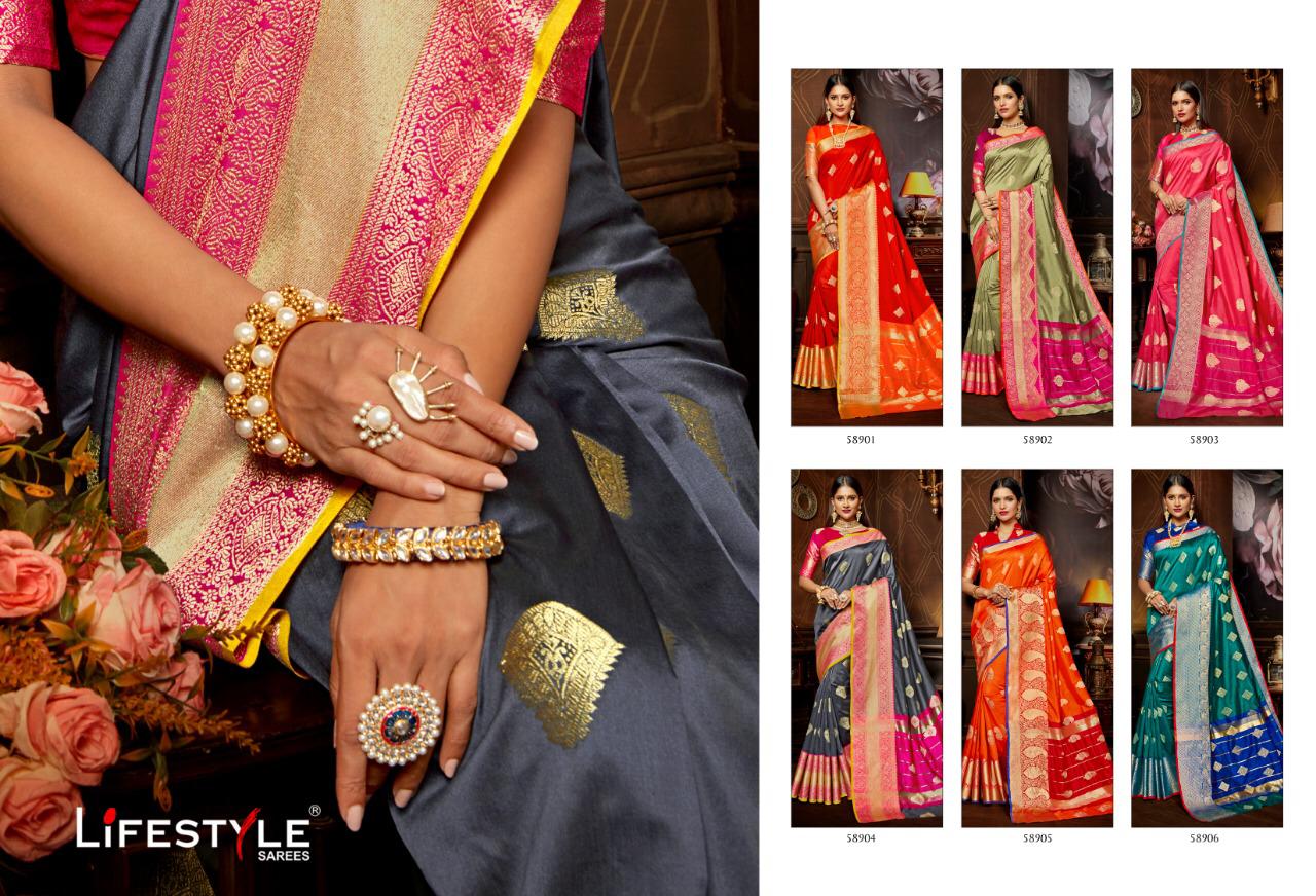 Buy Online Aardhangini By Lifestyle Weaving Silk Sarees Wholesale Supplier And Dealer Gujarat 6 Pcs of Full Catalogue at Wholesale Price. Looking for Aardhangini By Lifestyle Weaving Silk Sarees Wholesale Supplier And Dealer Gujarat Full Catalouge at Best Price? Buy Now Aardhangini By Lifestyle Weaving Silk Sarees Wholesale Supplier And Dealer Gujarat at Wholesale Rate of Rs 5340 with Total 6 Pcs from authroized dealer and supplier of LIFESTYLE Brand. Cost of Each piece is just only Rs 890 which is very low and affordable price to resale the product in your retail store ,This is Surat based Wholesale Supplier & Dealer of LIFESTYLE Brand. Click on Brand name to Know more about LIFESTYLE Brand's products.Call or Whatsapp on 9898838984 for booking or enquiry